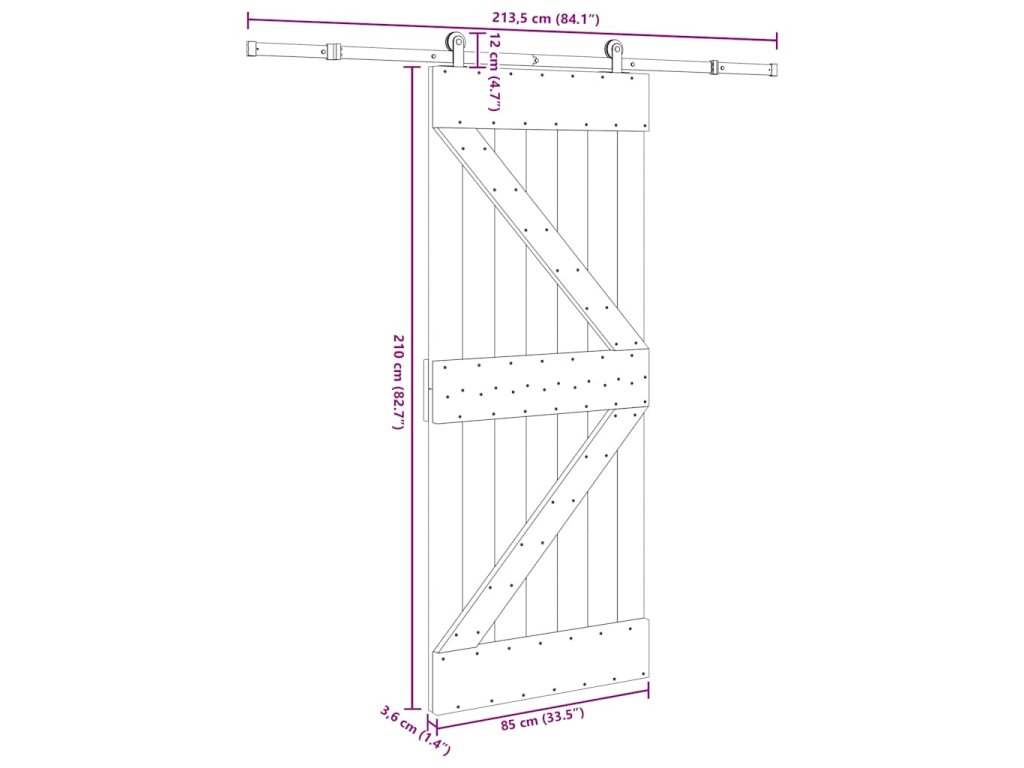 - Rozměry: 85 x 3,6/5,4 x 210 cm (Š x H x V)