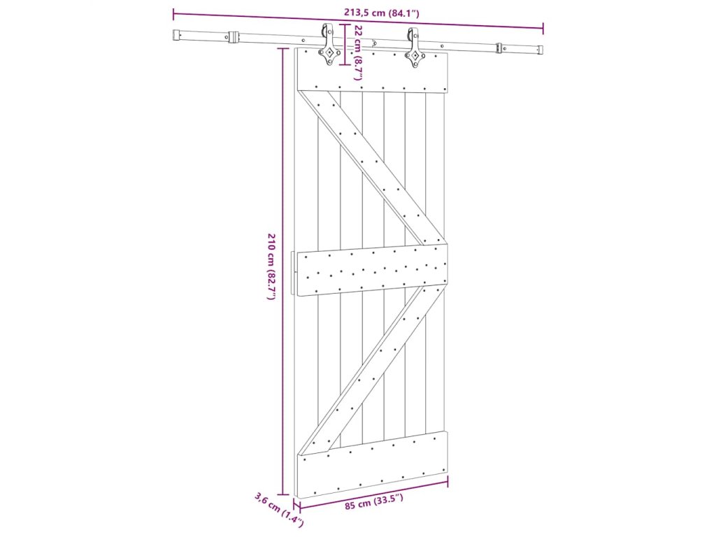 - Rozměry: 85 x 3,6/5,4 x 210 cm (Š x H x V)