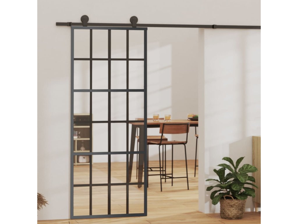 Jsou zhotoveny z průhledného ESG skla a do místnosti propouštějí dostatek světla. Posuvné dveře mají hliníkový rám, který jim dává čistý vzhled. Navíc jsou vybaveny mechanismem soft stop, kdy integrovaný tlumič jemně přibrzdí dveře před koncovou polohou, takže je lze otevírat a zavírat tiše. Balení obsahuje také montážní sadu pro snadnou instalaci posuvných dveří. Kování z práškově lakované oceli přispívá k celkové robustnosti.