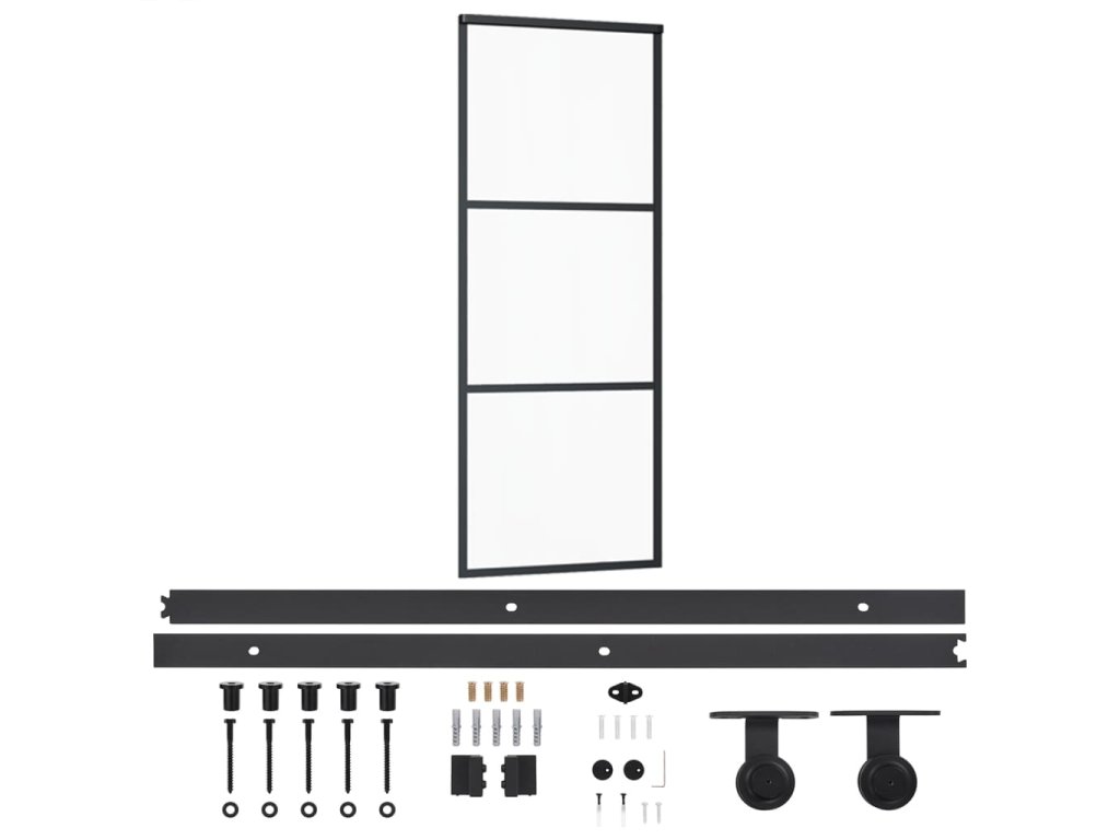 Jsou zhotoveny z průhledného ESG skla a do místnosti propouštějí dostatek světla. Posuvné dveře mají hliníkový rám, který jim dává čistý vzhled. Navíc jsou vybaveny mechanismem soft stop, kdy integrovaný tlumič jemně přibrzdí dveře před koncovou polohou, takže je lze otevírat a zavírat tiše. Balení obsahuje také montážní sadu pro snadnou instalaci posuvných dveří. Kování z práškově lakované oceli přispívá k celkové robustnosti.