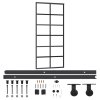 Jsou zhotoveny z průhledného ESG skla a do místnosti propouštějí dostatek světla. Posuvné dveře mají hliníkový rám, který jim dává čistý vzhled. Navíc jsou vybaveny mechanismem soft stop, kdy integrovaný tlumič jemně přibrzdí dveře před koncovou polohou, takže je lze otevírat a zavírat tiše. Balení obsahuje také montážní sadu pro snadnou instalaci posuvných dveří. Kování z práškově lakované oceli přispívá k celkové robustnosti.