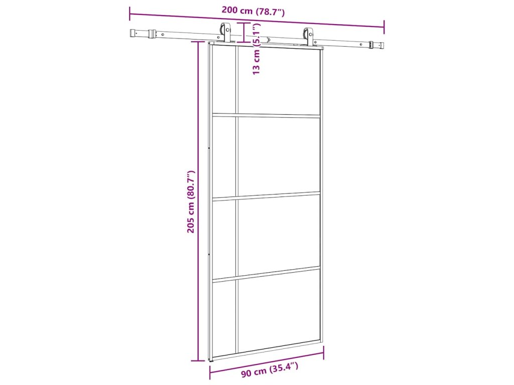 Velikost: | 90 x 205 cm (200 cm sliding rail) |