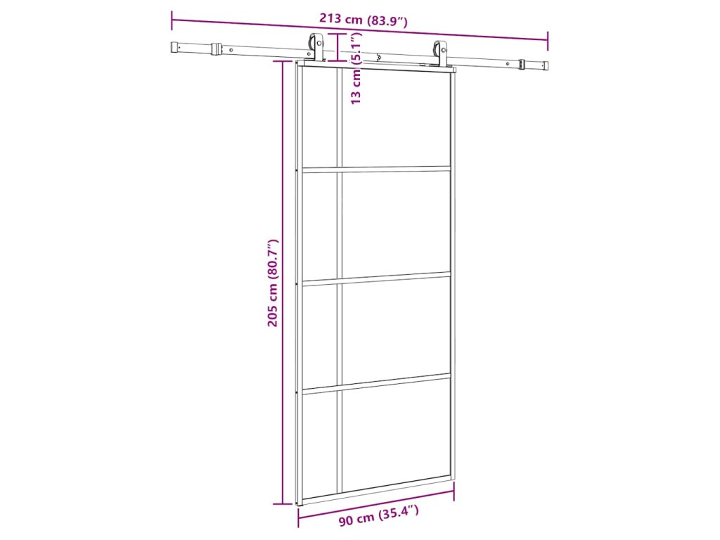 Velikost: | 90 x 205 cm (213 cm sliding rail) |
