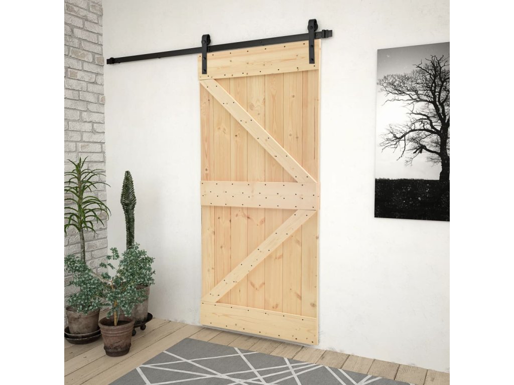 Dveře jsou vyrobené z masivního borového dřeva, jsou proto mimořádně stabilní a mají dlouhou životnost. Dřevo s přírodním povrchem můžete také přemalovat nebo přetřít podle svého vkusu. Balení obsahuje také kování pro snadnou instalaci posuvných dveří. Kování z práškově lakované oceli přispívá k celkové robustnosti dveří.