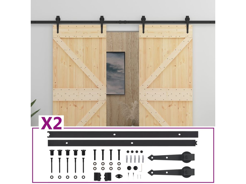 Dveře jsou vyrobené z masivního borového dřeva, jsou proto mimořádně stabilní a mají dlouhou životnost. Dřevo s přírodním povrchem můžete také přemalovat nebo přetřít podle svého vkusu. Balení obsahuje také kování pro snadnou instalaci posuvných dveří. Kování z práškově lakované oceli přispívá k celkové robustnosti dveří.