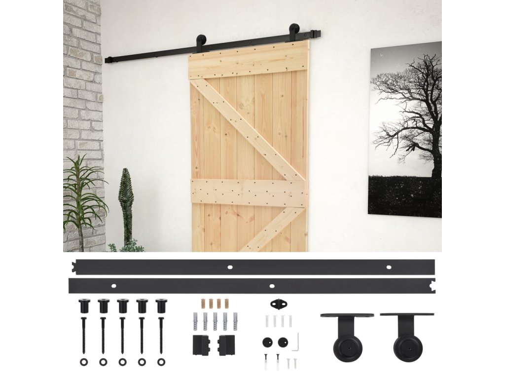 Dveře jsou vyrobené z masivního borového dřeva, jsou proto mimořádně stabilní a mají dlouhou životnost. Dřevo s přírodním povrchem můžete také přemalovat nebo přetřít podle svého vkusu. Balení obsahuje také kování pro snadnou instalaci posuvných dveří. Kování z práškově lakované oceli přispívá k celkové robustnosti dveří.