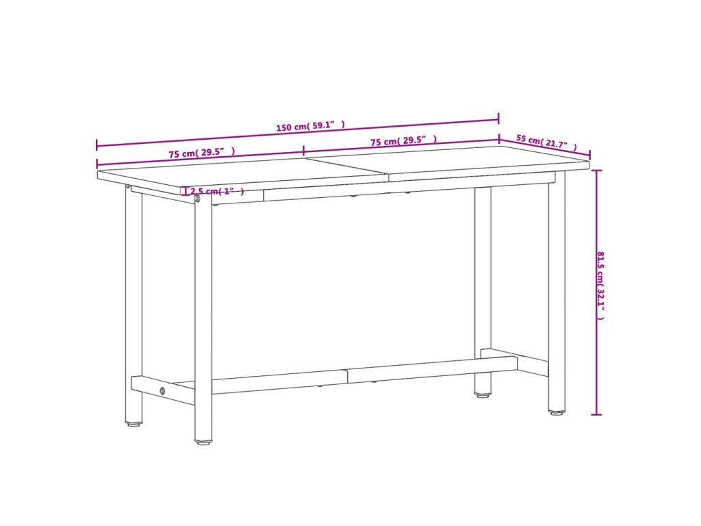 - Celkové rozměry: 150 x 55 x 81,5 cm (D x Š x V)