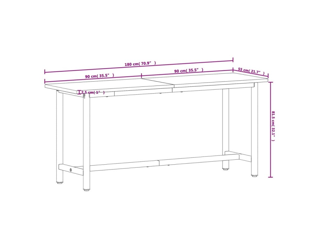 - Celkové rozměry: 180 x 55 x 81,5 cm (D x Š x V)