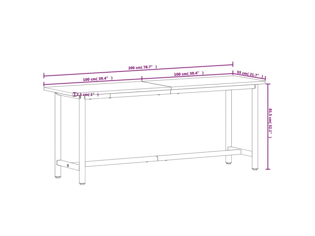 - Celkové rozměry: 200 x 55 x 81,5 cm (D x Š x V)