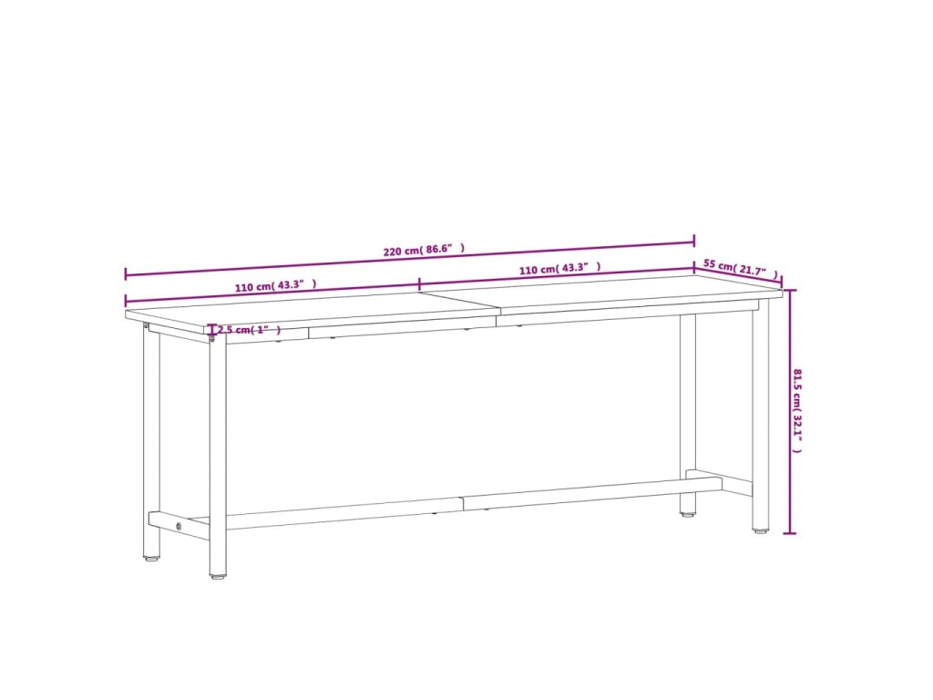 - Celkové rozměry: 220 x 55 x 81,5 cm (D x Š x V)
