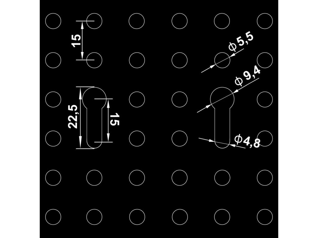 - Rozměry nekulatých otvory: 9,4 x 22,5 mm (Š x V)