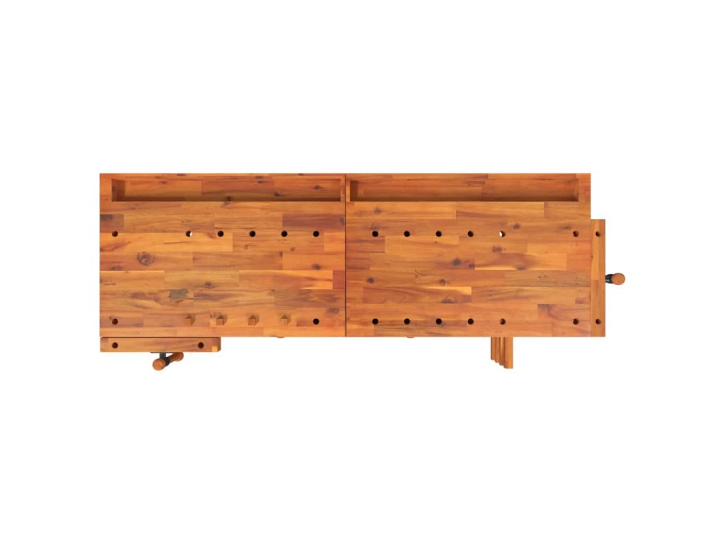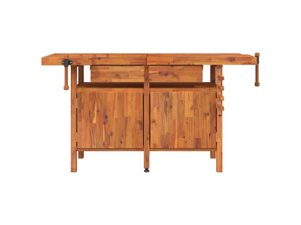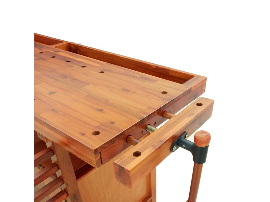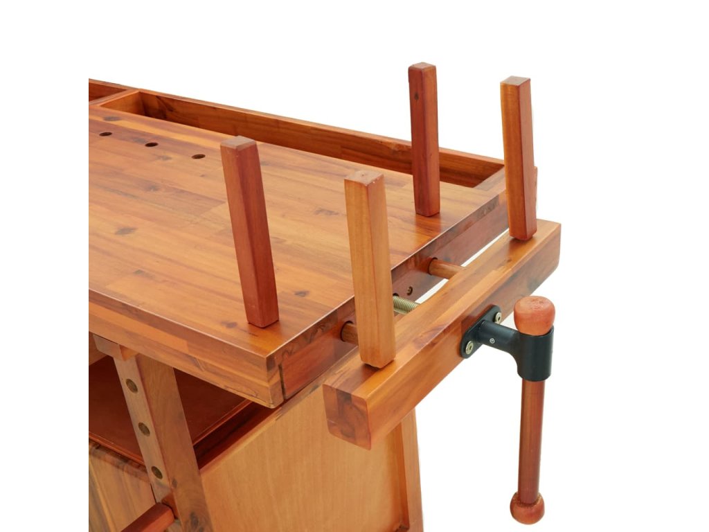 - Extra robustnost: Pracovní stůl je vybaven 1 předním svěrákem a 1 bočním svěrákem, součástí jsou také 4 dřevěné tyče pro pevné a bezpečné upevnění obrobků.