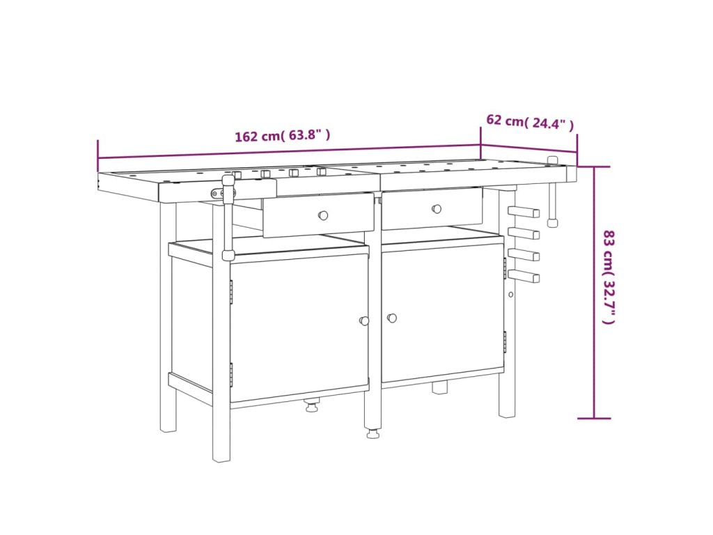 - Dostatek úložného prostoru: Tato pracovní stanice se 2 úložnými zásuvkami a 1 velkou přihrádkou s dvířky poskytuje dostatek úložného prostoru, abyste měli nářadí přehledně uspořádané a po ruce.
