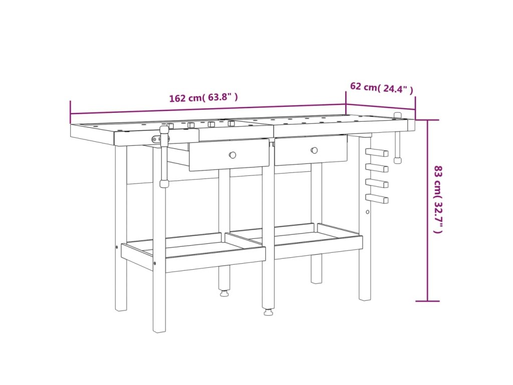 Tento dřevěný pracovní stůl je vzhledem ke svému pevnému a stabilnímu rámu ideální pro jakoukoli práci v garáži, dílně nebo kůlně.