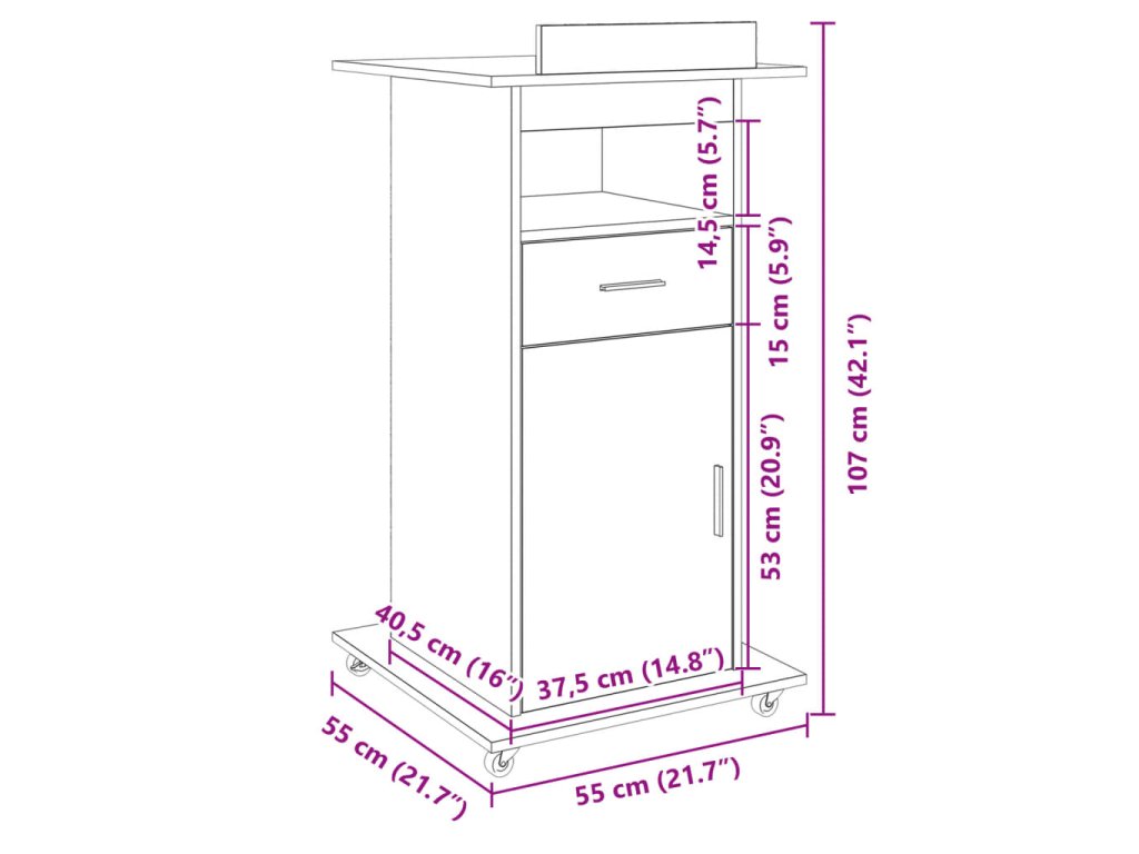 - Dostatek úložného prostoru: Pult je navržen s 1 zásuvkou a 2 přihrádkami, abyste měli dostatek prostoru pro uspořádání a přístup k lahvím, poznámkám, knihám nebo složkám.