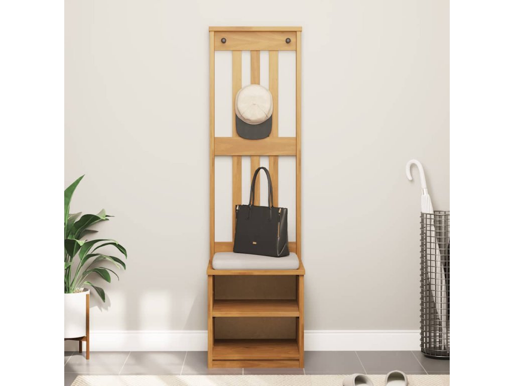 - Vzhled akátového dřeva: Lavice do předsíně, vyrobená z masivního borovicového dřeva s povrchovou úpravou z akátového dřeva, ukazuje přirozenou krásu materiálu a dodá vašemu prostoru rustikální šarm a živoucí vzhled. Tato kombinace nejen zvyšuje jeho estetický dojem, ale také zajišťuje odolnost a dlouhou životnost, takže je dokonalým doplňkem jak pro styl, tak pro funkci.