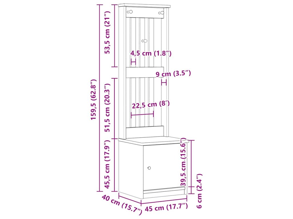 45 x 40 x 159.5 cm