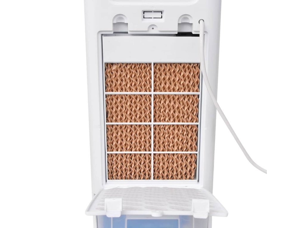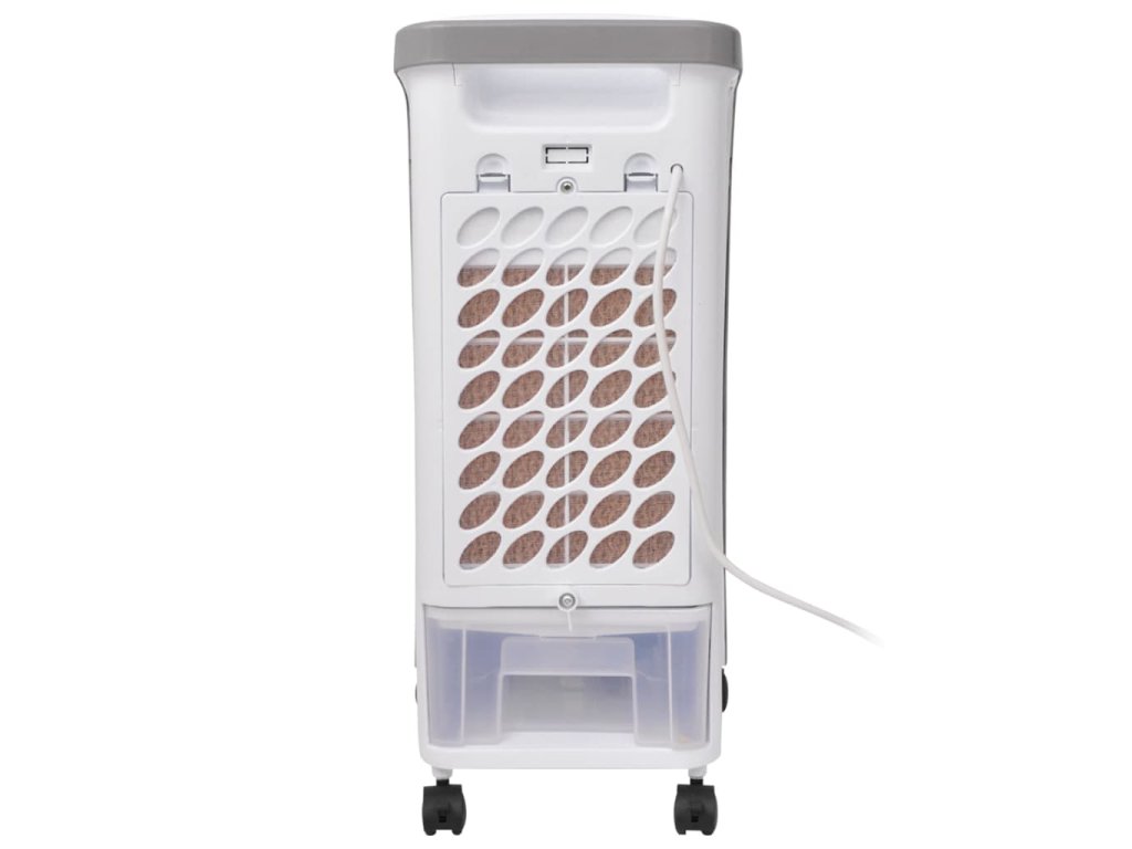 Chladivého efektu je dosahováno odpařováním vody/ledu z 4litrové nádrže (bez freonu). Ochlazovač můžete nastavit na jednu ze 3 rychlostí dle vaší potřeby. Vestavěná rukojeť i kolečka navíc umožňují jeho snadnou přepravu.