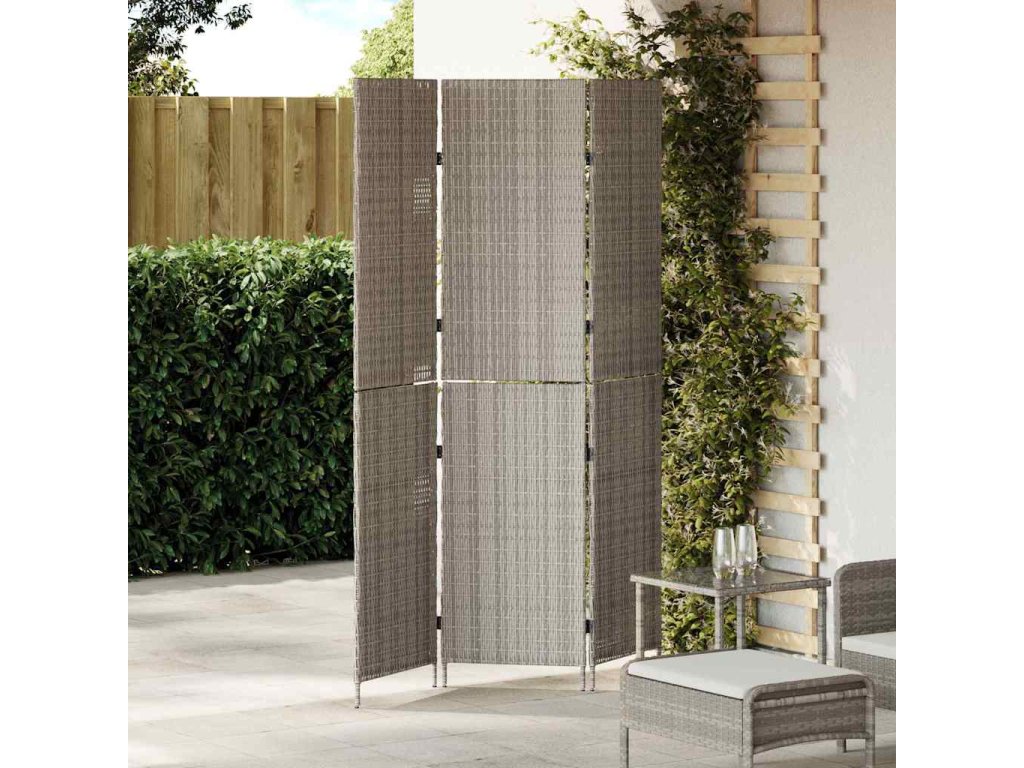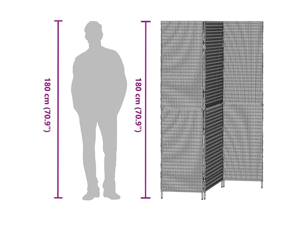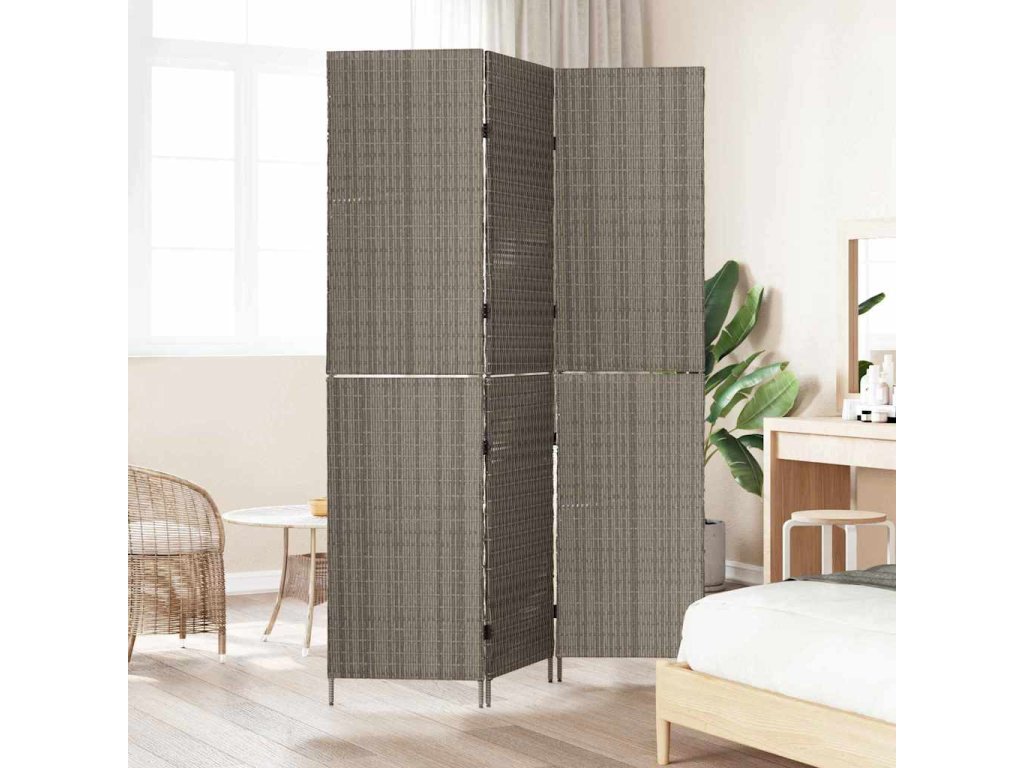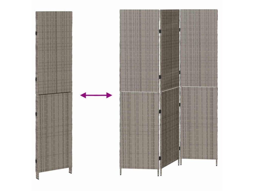 Tato přepážka v šedém ratanu s pevným ocelovým rámem je lehká, ale pevná, takže ji můžeš snadno přenášet a přestavovat podle potřeby. Vhodná jak do interiéru, tak exteriéru.- Barva: Šedá