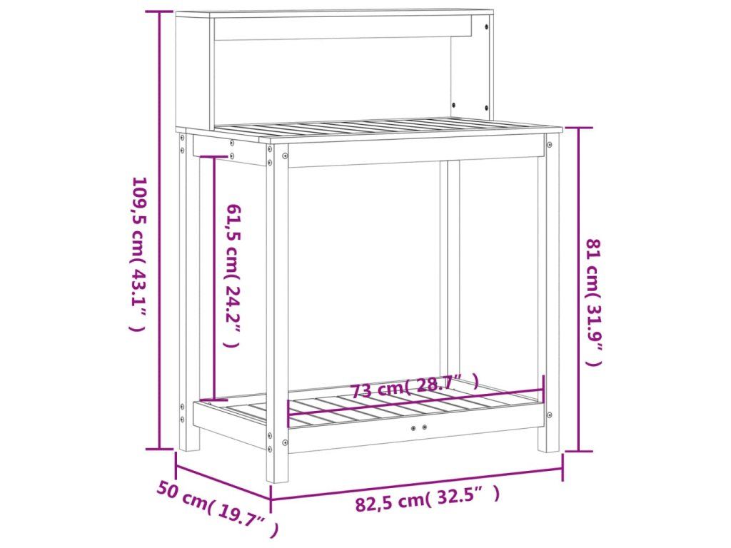 - Dostatek úložného prostoru: Pracovní stůl na přesazování s otevřenými policemi poskytuje dostatek prostoru pro související předměty, jako je drobné zahradnické nářadí, zemina, hnojiva apod.