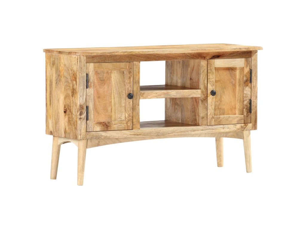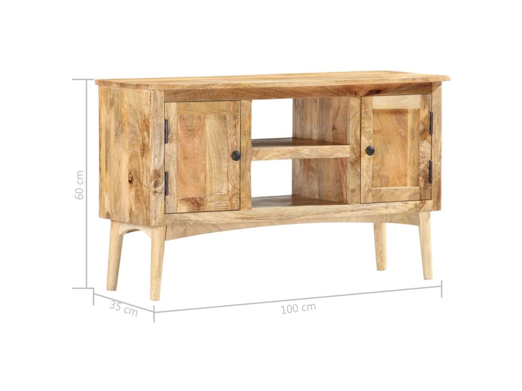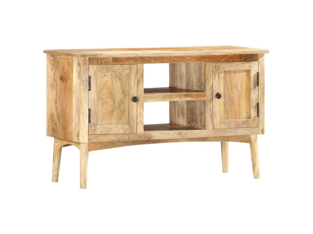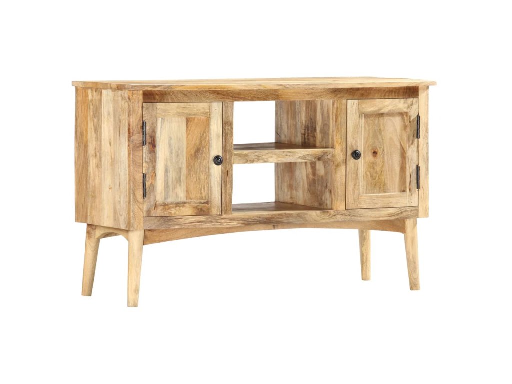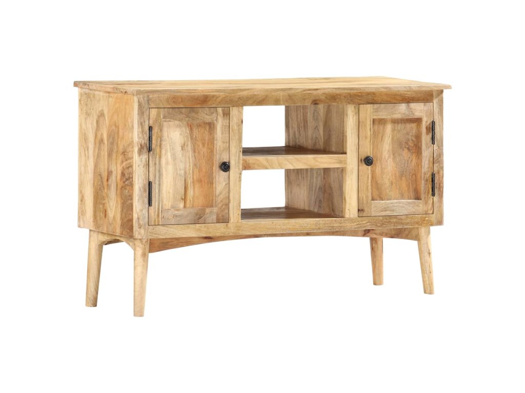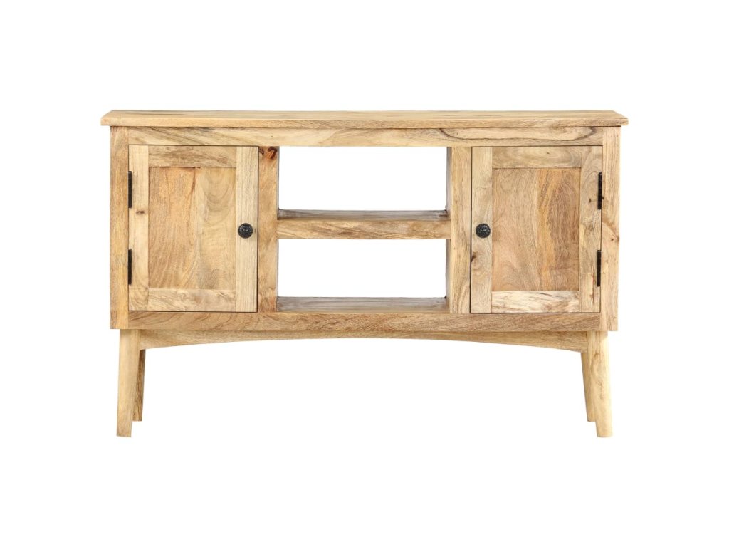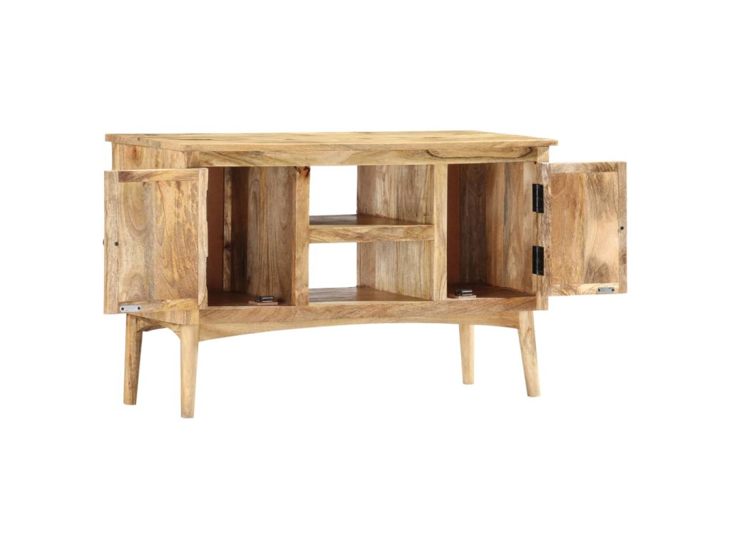 Příborník je vyrobený z masivního mangovníkového dřeva, které bylo vyleštěné a nalakované, přitom si však zachovalo svůj přírodní odstín a přirozené vzezření. Mangovníkové dřevo je husté a robustní tvrdé dřevo, jehož povrch se vyznačuje krásnými hnědými či zlatými pruhy a konturami. Nádherná kresba dřeva dává každému kusu nábytku zcela jedinečný charakter, jímž se lehce liší od všech ostatních. Skříňka má pevnou a stabilní horní desku, na níž si můžete vystavit košíky s ovocem, vázy či jiné dekorativní předměty. 2 přihrádky s dvířky a 2 otevřené přihrádky vám poskytnou dodatečný úložný prostor. Montáž je snadná.