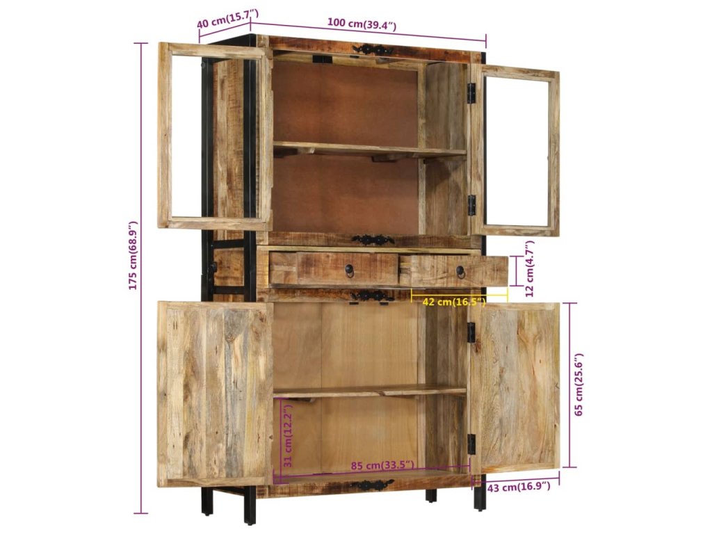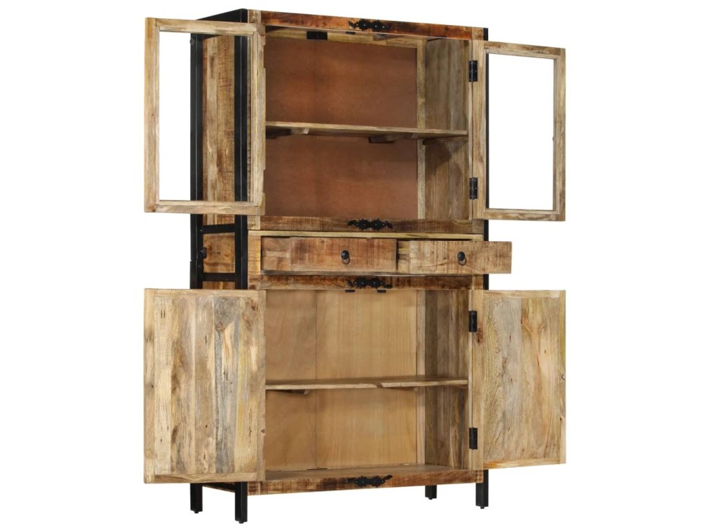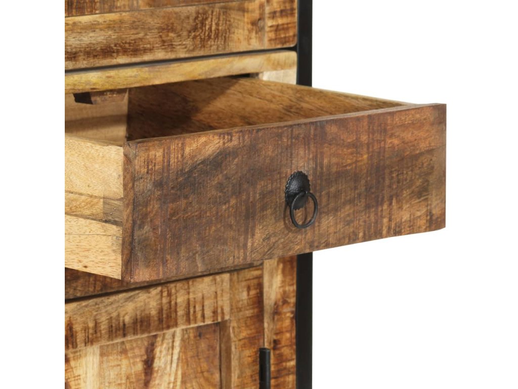 - Materiál: masivní hrubé mangovníkové dřevo, práškově lakované železo