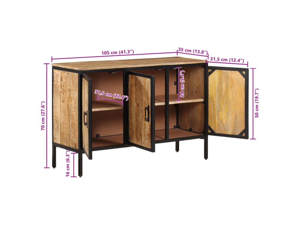 - Stabilní rám s dlouhou životností: Železný rám příborníku zvýrazní váš interiér industriálním stylem a zajistí výjimečnou trvanlivost, stabilitu a odolnost proti korozi.
