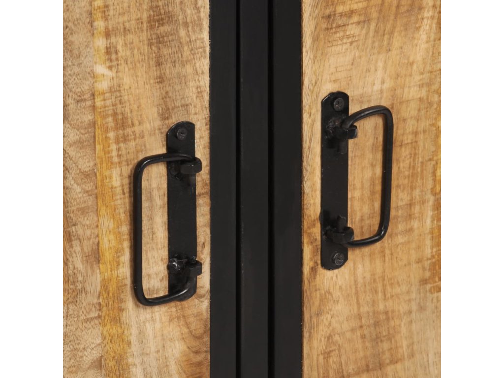 - Materiál: masivní hrubé mangovníkové dřevo s přírodním povrchem, železo