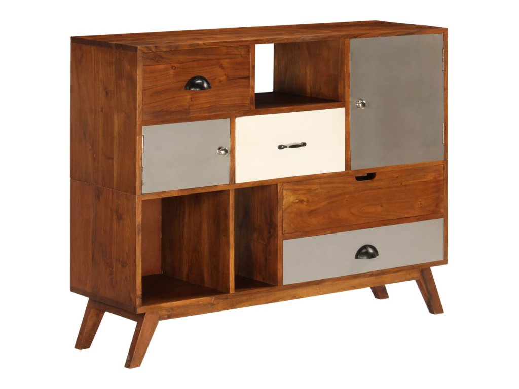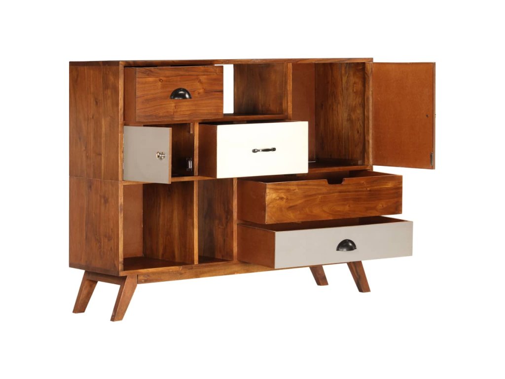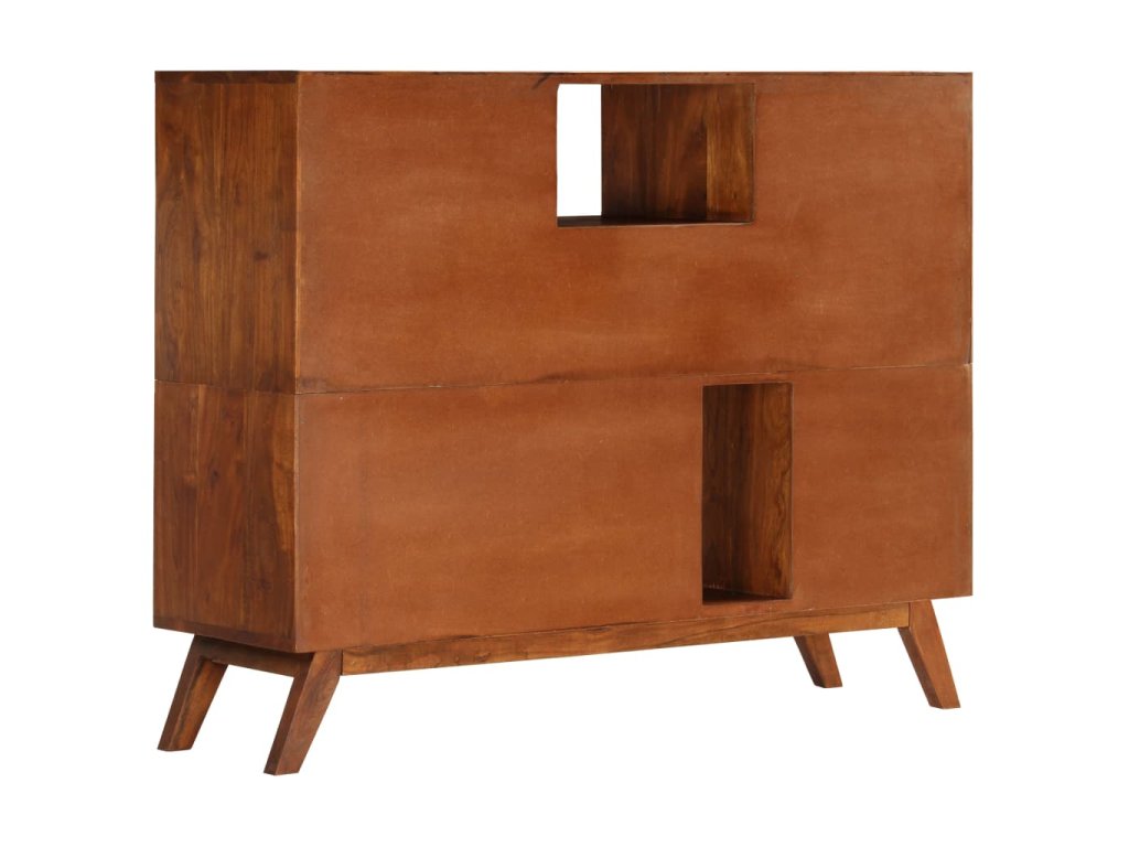 Příborník je vyroben z masivního akáciového dřeva a jeho povrch je ošetřen tmavě medovou barvou. Vyznačuje se také svou stabilitou a odolností. Každá fáze výrobního procesu je prováděna s mimořádnou péčí, ať se jedná o leštění, natírání anebo lakování. Zručné zpracování a esteticky působivá kresba dřeva činí každý kus nábytku jedinečným a lehce odlišným od ostatních. Příborník disponuje 4 zásuvkami a 2 skříňkami, které nabízí spoustu prostoru pro ukládání vašich digitálních zařízení, knih, mediálních nosičů a dalších věcí. Montáž je snadná.