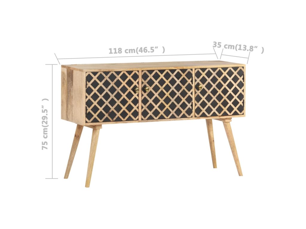 Odkládací stolek je vyrobený z masivního mangovníkového dřeva, je tedy mimořádně stabilní a odolný. Mangovník má husté a robustní tvrdé dřevo, jehož povrch se vyznačuje překrásnými hnědými či zlatavými pruhy a liniemi. Na pevné desce stolku si můžete vystavit dekorativní předměty, jako jsou vázy, mísy s ovocem a květináče. Ve skříňce najdete spoustu místa, kde si můžete úhledně uspořádat všelijaké věci.