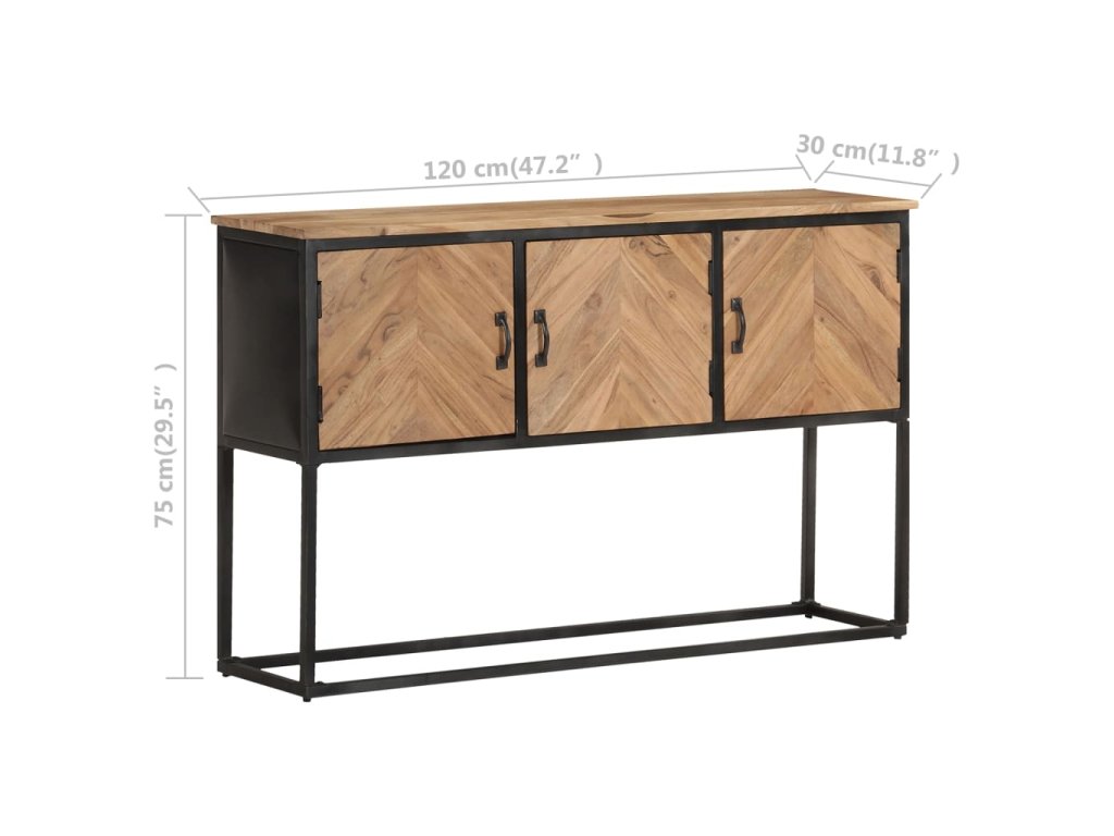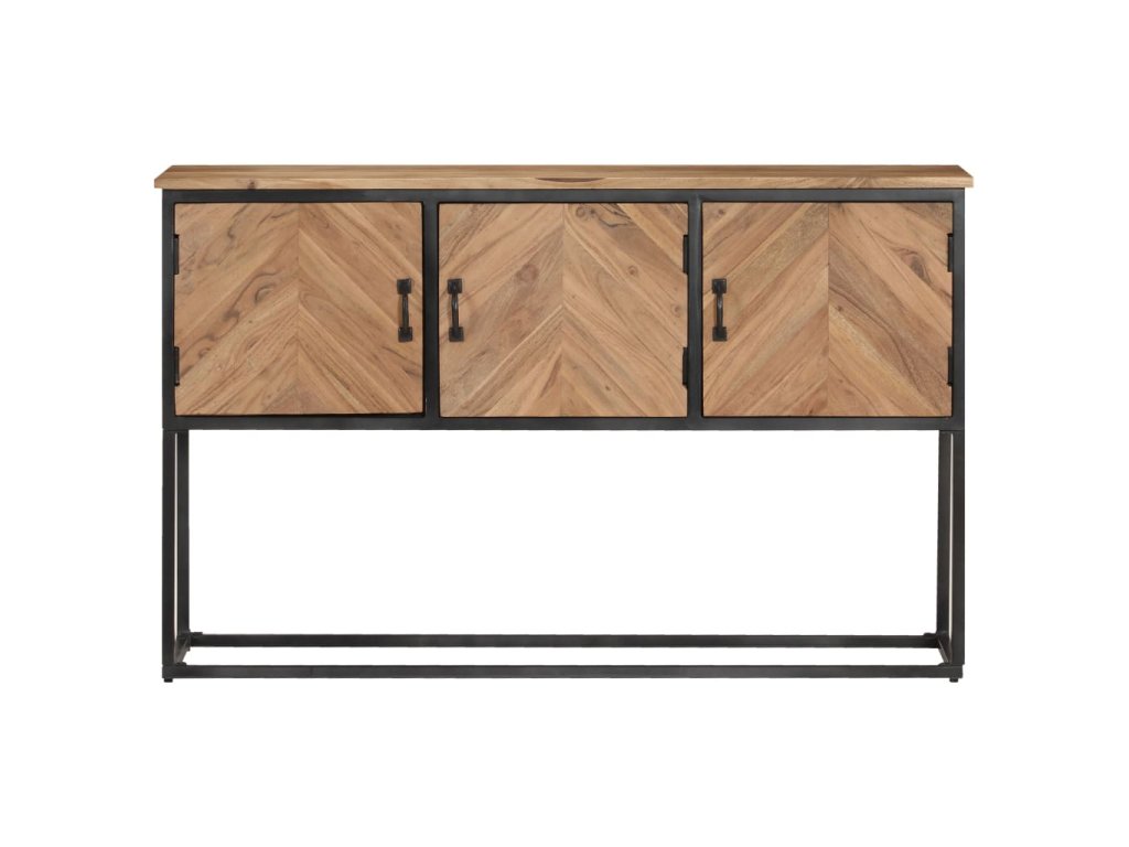 Odkládací skříňka je vyrobená z masivního akáciového dřeva, takže je stabilní a odolná. Železná základna zajišťuje extra stabilitu. Tato úložná skříňka se třemi dvířky nabízí dostatek úložného prostoru, abyste si do ní mohli přehledně a na dosah ruky zorganizovat celou řadu věcí.