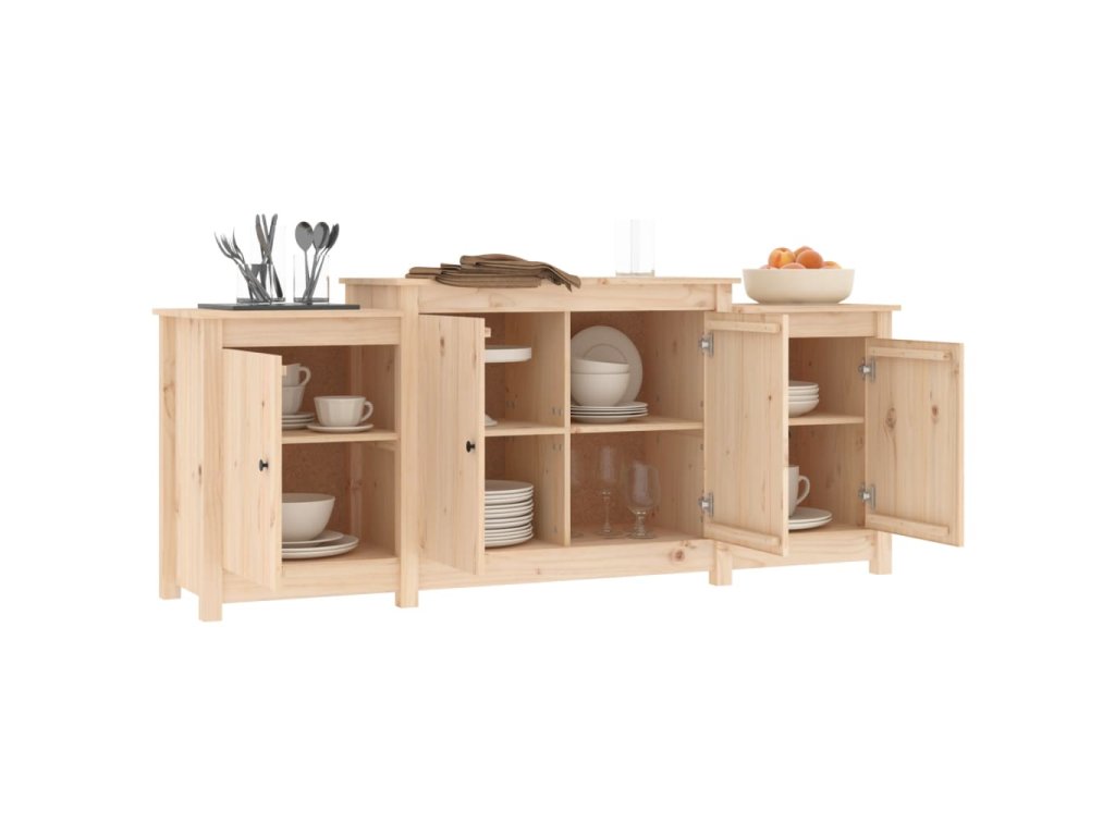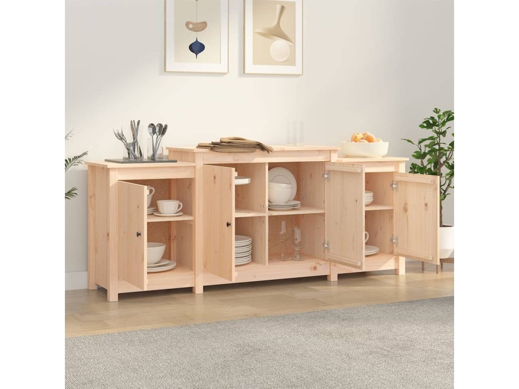 Tento dřevěný příborník s minimalistickým designem je nejen funkčním, ale i výrazně dekorativním doplňkem vašeho současného interiéru.
