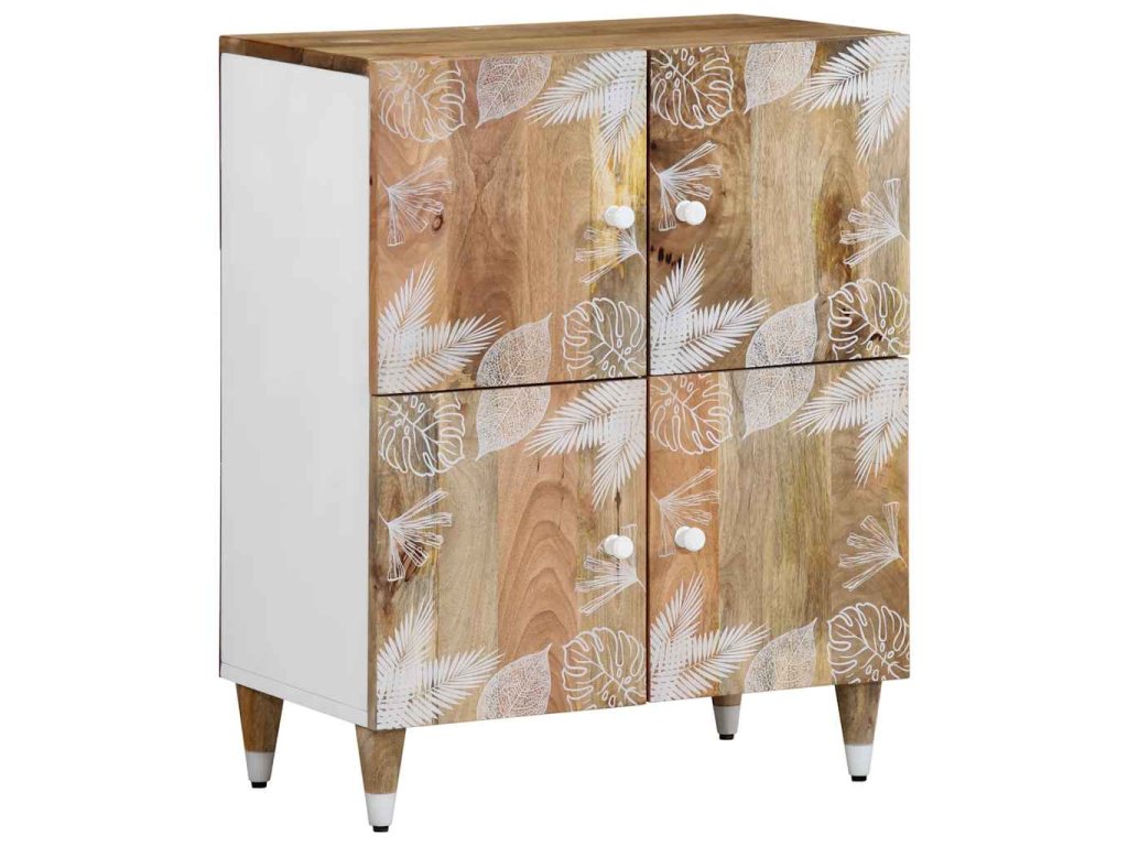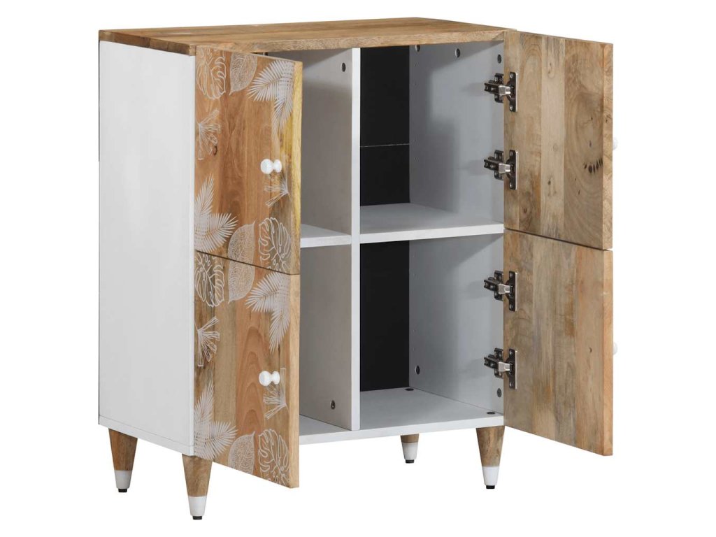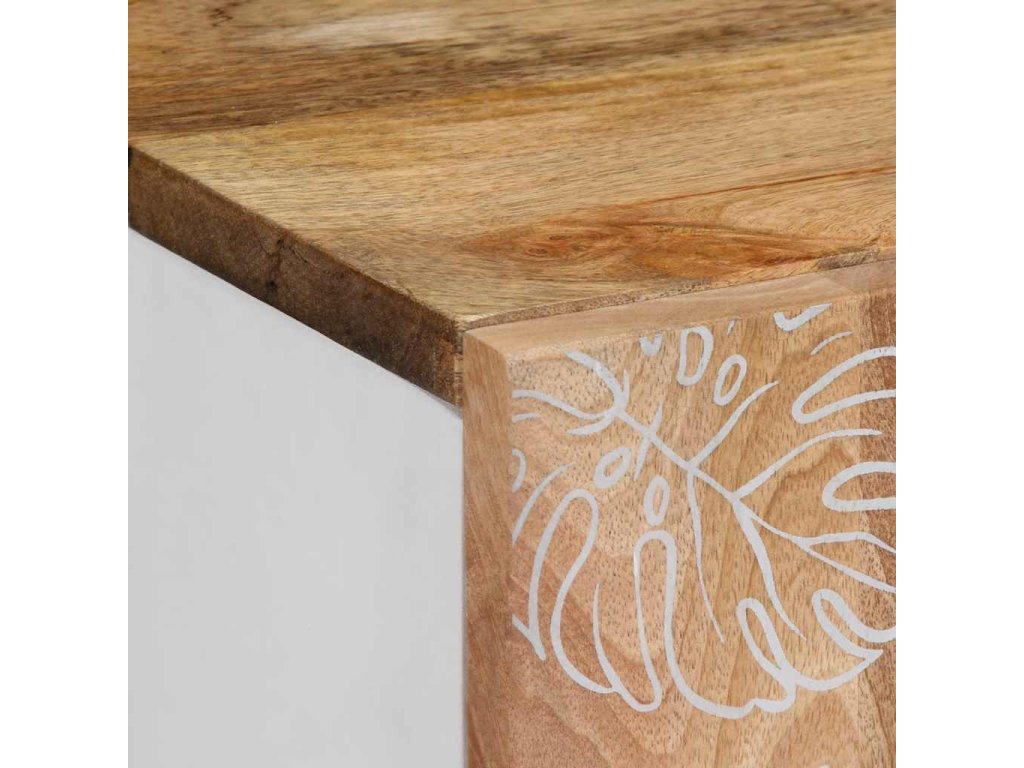 - Materiál: Přírodní mango s bílým lakem, kompozitní dřevo, kov