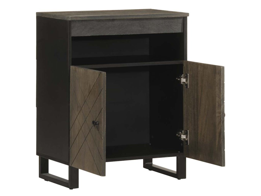 - Materiál: masivní mangové dřevo s šedou povrchovou úpravou pískováním, kompozitní dřevo, kov