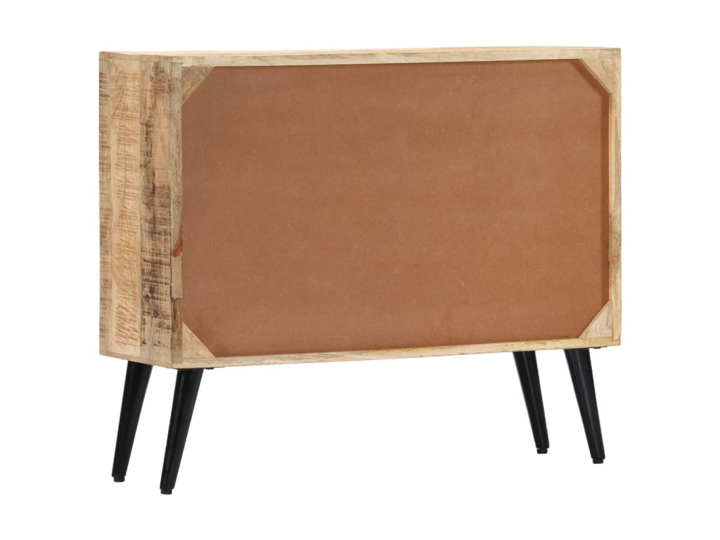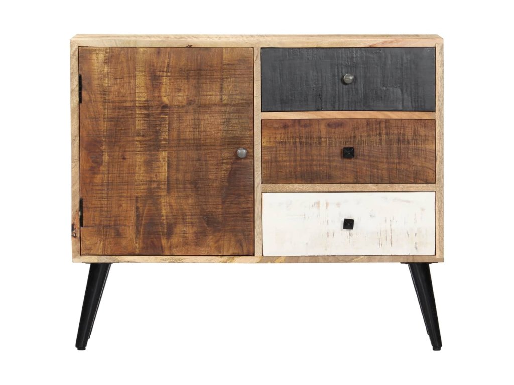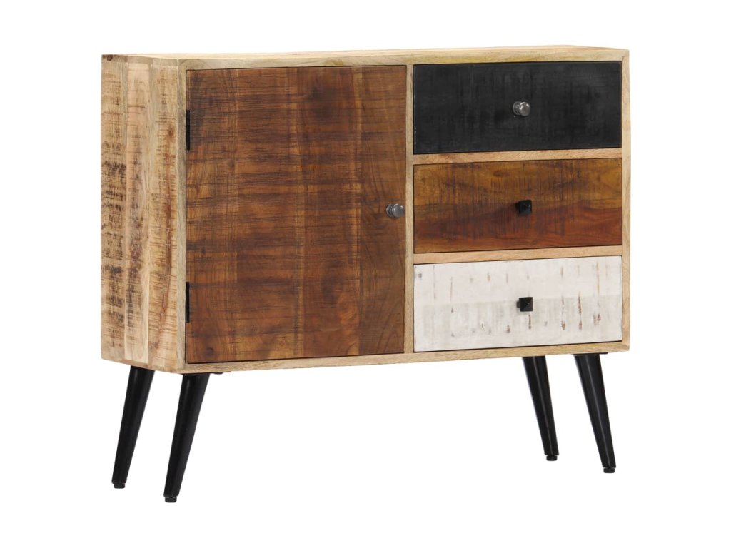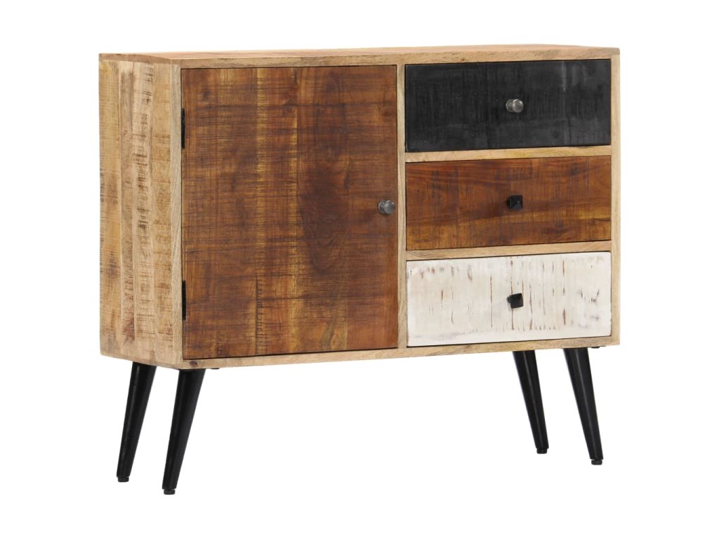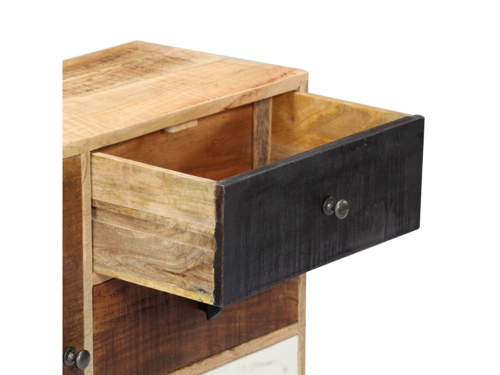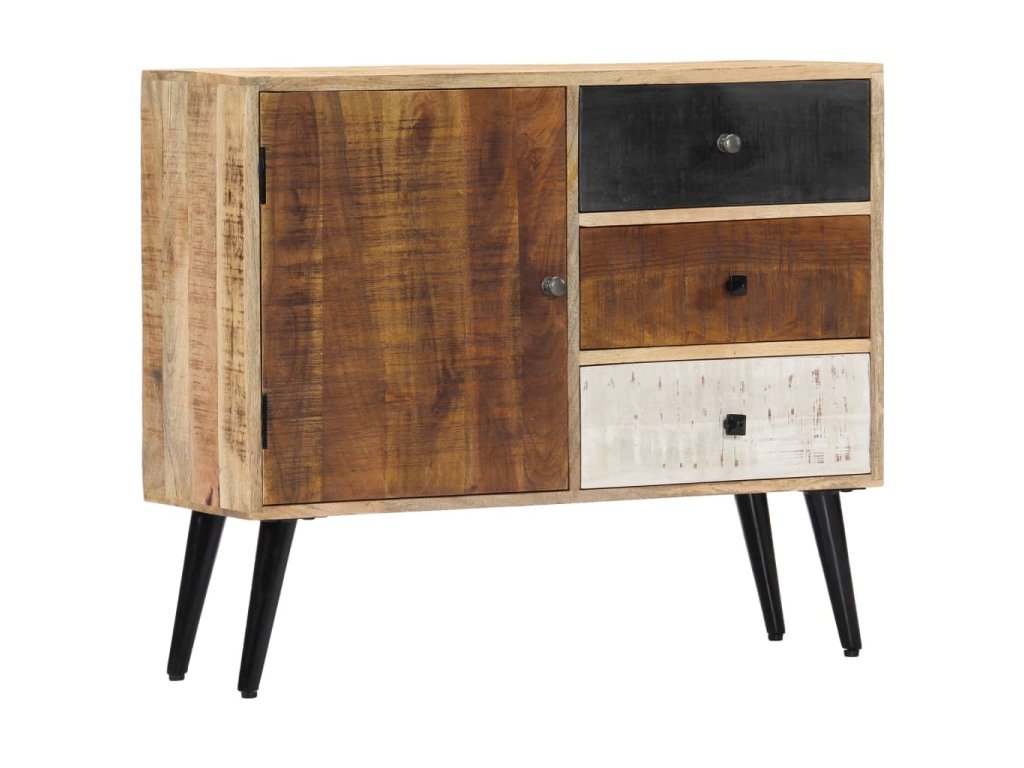 Příborník je vyrobený z masivního mangovníkového dřeva a byl naleštěný, natřený a nalakovaný, aby vynikl jeho půvabný a rafinovaný vzhled. Mangovník má husté a robustní tvrdé dřevo, jehož povrch je typický svými hnědými či zlatými pruhy a liniemi. Krásu stolku umocňují také tři zásuvky a přihrádka s dvířky, které vám poskytnou spoustu úložného prostoru, kde si můžete přehledně uspořádat boty, knížky a další různé maličkosti tak, abyste je měli po ruce. Sestavení příborníku je jednoduché a k jeho čištění vám postačí navlhčený hadřík.