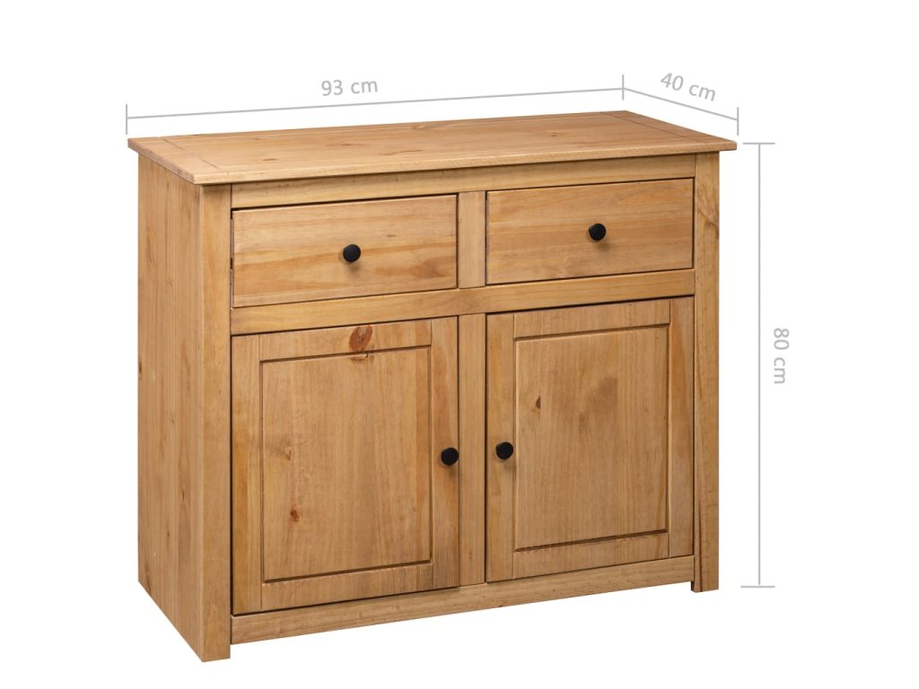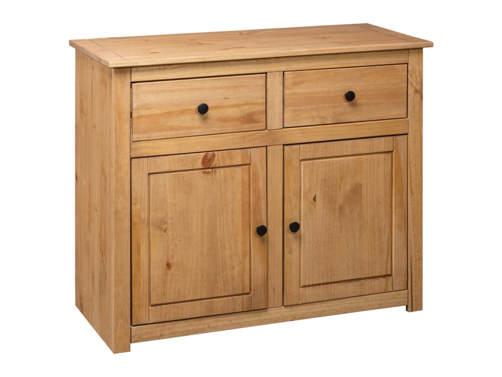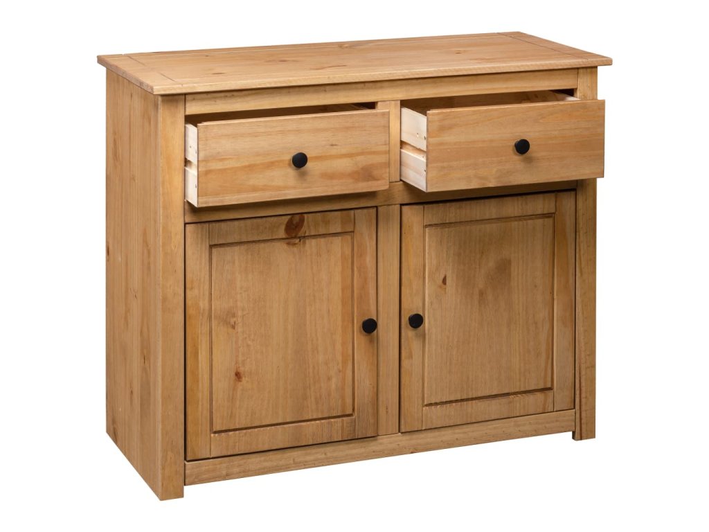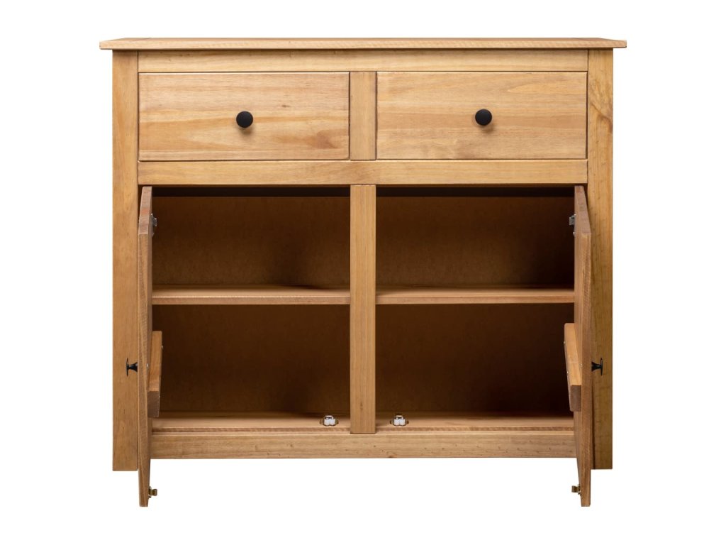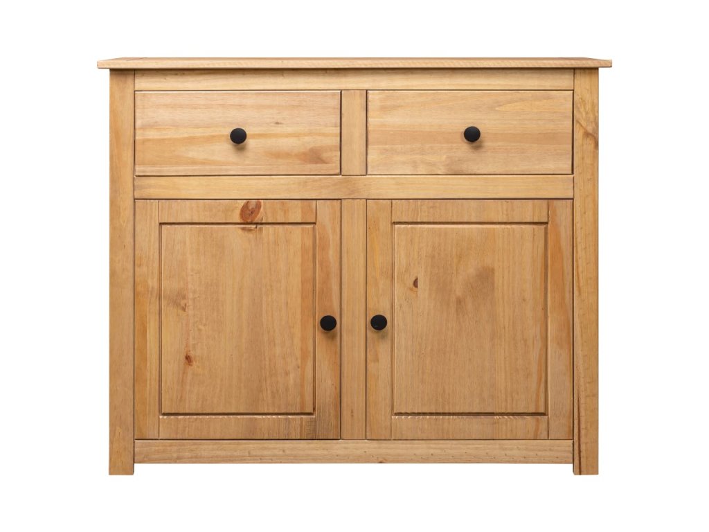 Příborník se 2 zásuvkami a 2 dvířky vám poskytne spoustu úložného prostoru, kam si můžete přehledně ukládat vaše časopisy, knihy, DVD a multimediální zařízení tak, abyste je měli zorganizované a stále po ruce. Robustní horní deska je ideální pro vystavení dekorativních předmětů, jako jsou vázy nebo rostliny v květináčích. Příborník je vyrobený z masivního borového dřeva. Každá fáze výrobního procesu se provádí s největší péčí, ať už se jedná o leštění, natírání nebo lakování. Zručné řemeslné zpracování a krásná kresba dřeva propůjčuje každému kusu nábytku jeho jedinečný a od všech ostatních lehce odlišný vzhled.