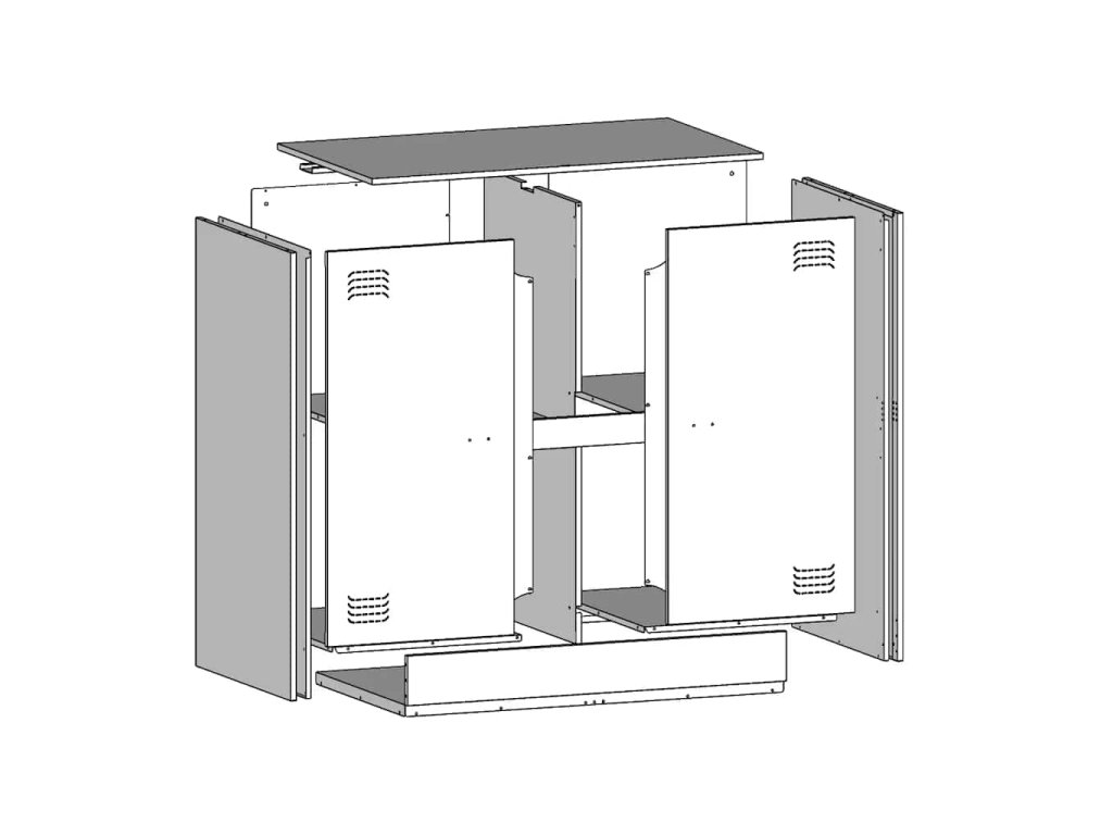 - Stabilní materiál: Rám příborníku je vyroben z oceli válcované za studena. Ocel válcovaná za studena je druh nízkouhlíkové oceli vyráběné metodou válcování za studena a zpracovávané při teplotách blízkých běžným pokojovým teplotám. Ocel válcovaná za studena má hladší povrch, větší pevnost a vyšší přesnost.