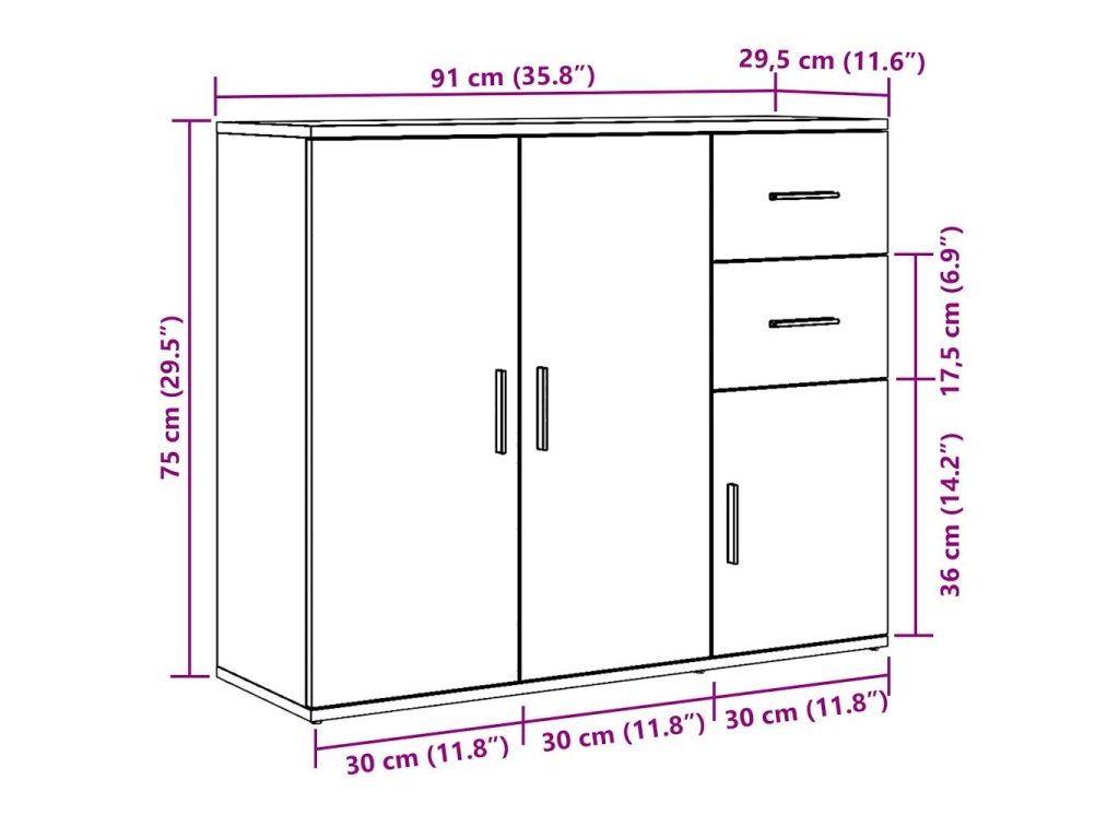 - Rozměry: 91 x 29,5 x 75 cm (Š x H x V)