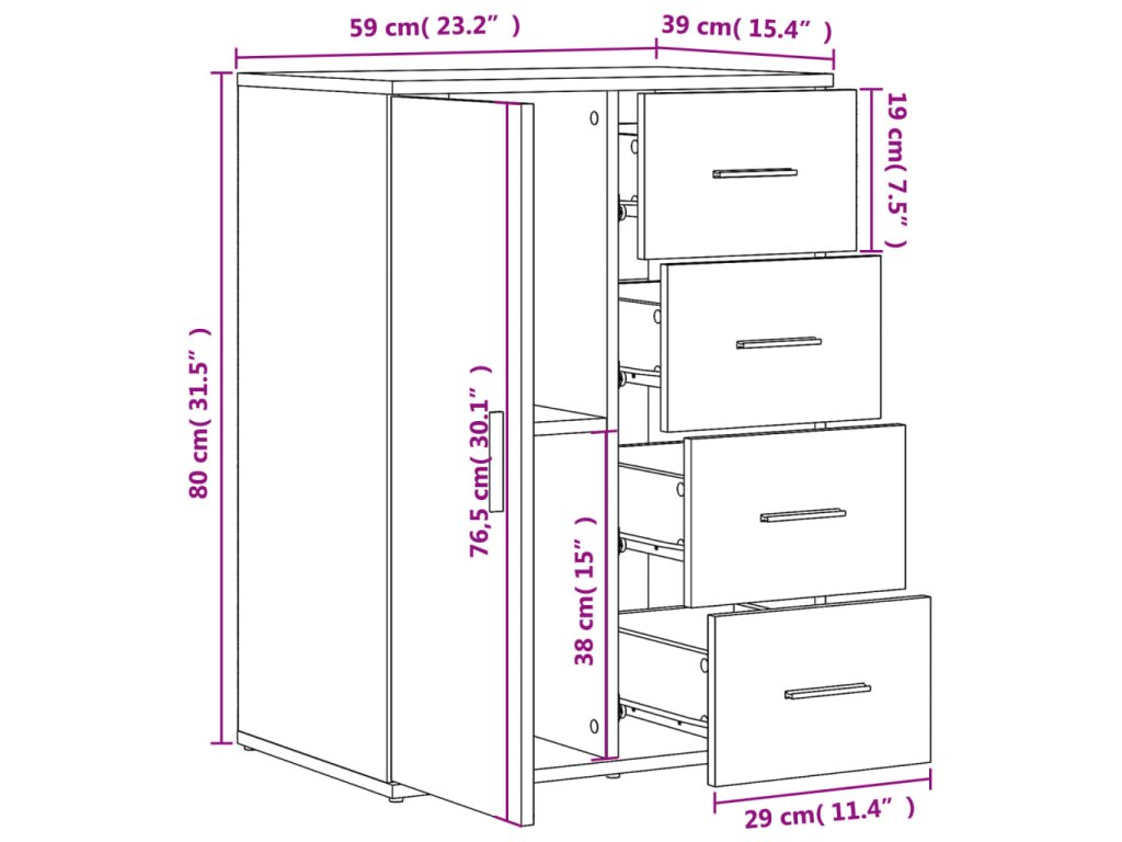 - Rozměry: 59 x 39 x 80 cm (Š x H x V)