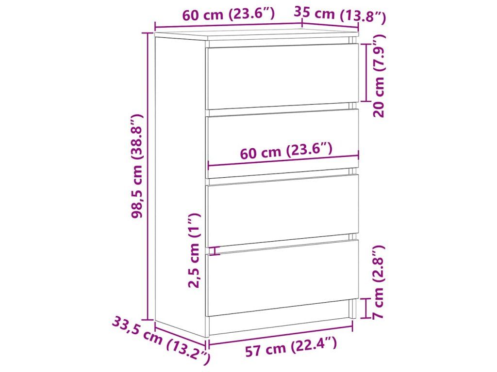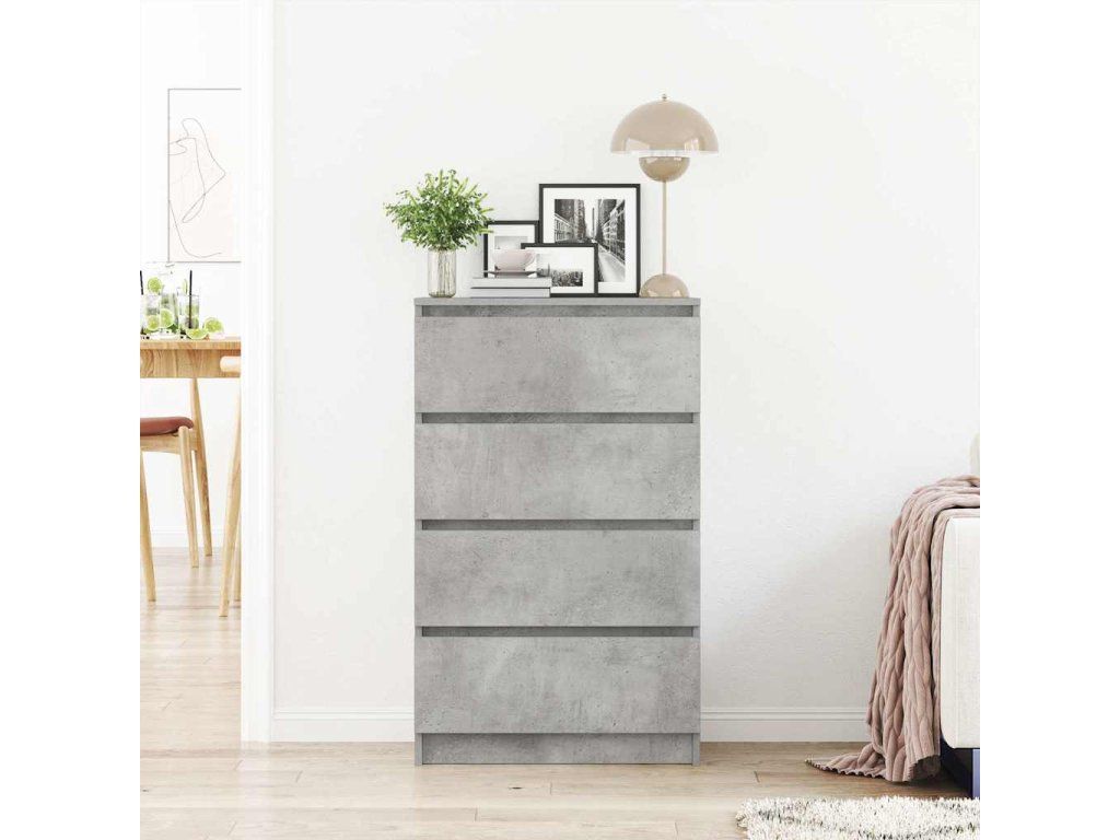 Skříňka se 4 zásuvkami poskytuje spoustu prostoru pro uložení knih, multimediálních zařízení a dalších věcí. Robustní horní deska je ideální pro vystavení dekorativních předmětů, fotorámečků nebo pokojových rostlin. Můžete ji používat také jako nízkou skříňku, odkládací skříňku apod. Tento příborník z prvotřídního kompozitního dřeva je vyrobený tak, aby vydržel.