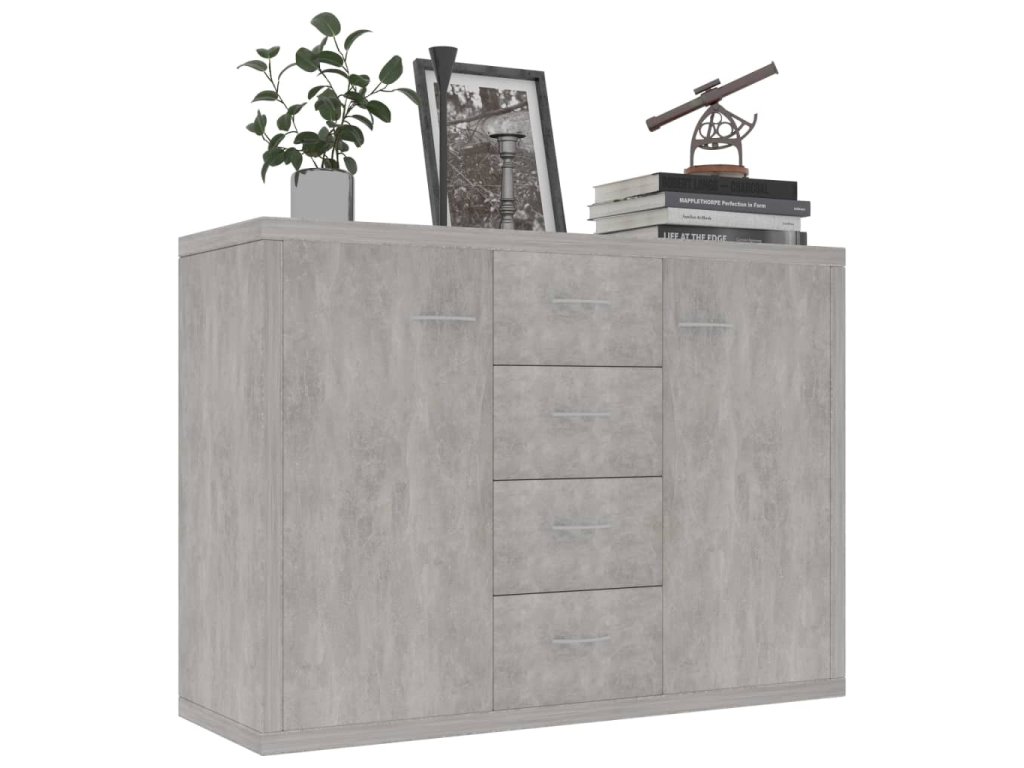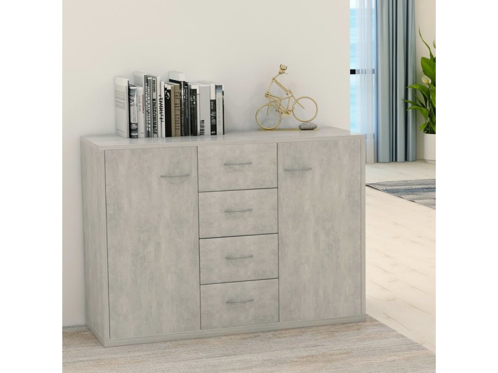 Skříňka má 4 zásuvky a přihrádky se 2 dvířky, a poskytuje tak spoustu úložného prostoru pro vaše knihy, multimediální zařízení a další předměty. Robustní deska je ideálním místem pro vystavení dekorativních předmětů, zarámovaných fotek nebo květin. Příborník lze také využít jako odkládací skříňku, komodu apod. Je zhotovený z dřevotřísky prémiové kvality a vydrží vám sloužit dlouhé roky.