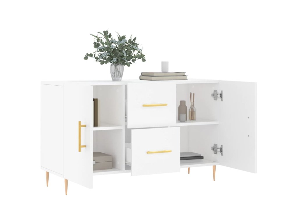 - Stabilní a robustní horní část: Horní část příborníku se skvěle hodí k vystavení dekorativních předmětů, fotorámečků a pokojových rostlin.