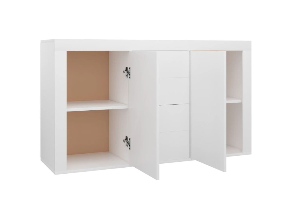 Příborník má 2 dvířka a 4 zásuvky, najdete zde tedy spoustu úložného prostoru pro vaše knížky, multimediální zařízení a další věci. Pevná horní deska se výborně hodí k vystavování různých ozdob, zarámovaných fotografií či pokojových rostlin. Jelikož je skříňka vyrobená z prémiového kompozitního dřeva, vydrží vám sloužit velmi dlouhou dobu. Snadno ji očistíte navlhčeným hadříkem.
