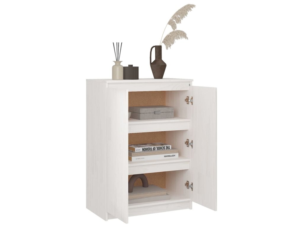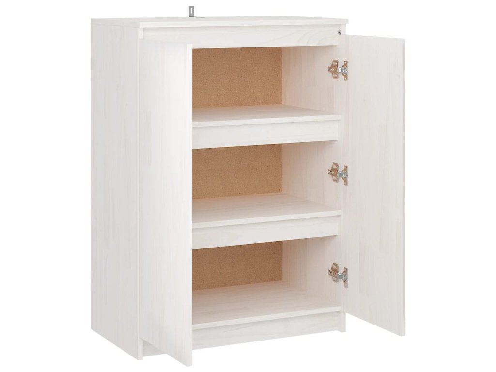 Příborník je vyrobený z masivního borového dřeva, takže je mimořádně pevný a odolný. Skříňka se 2 dvířky a 3 přihrádkami poskytuje spoustu prostoru pro uložení knih, multimediálních zařízení a dalších věcí. Robustní deska je ideální pro vystavení dekorativních předmětů, fotorámečků nebo pokojových rostlin. Příborník se snadno čistí vlhkým hadříkem.