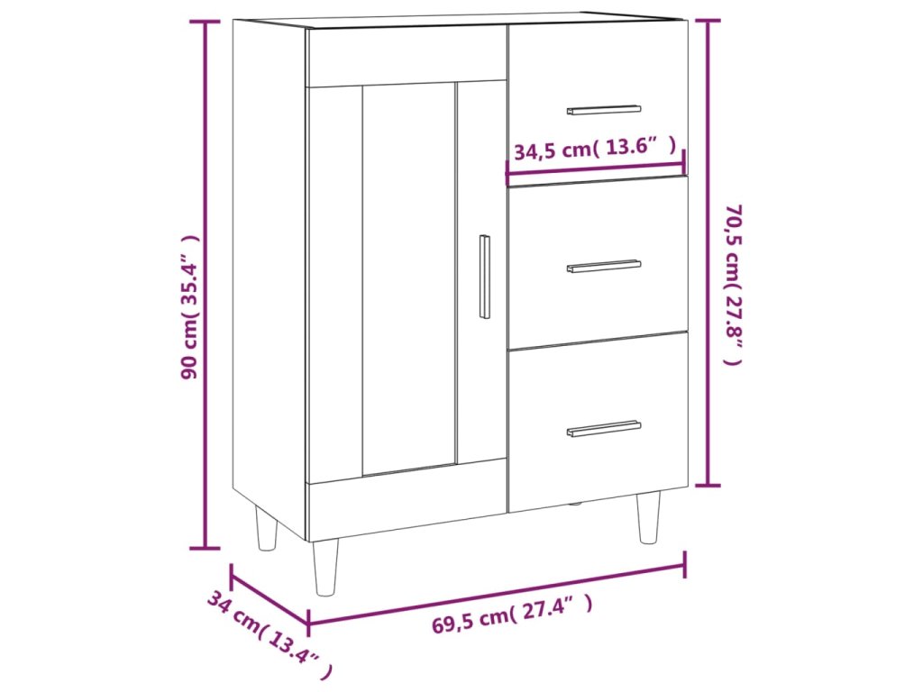 - Rozměry: 69,5 x 34 x 90 cm (Š x H x V)