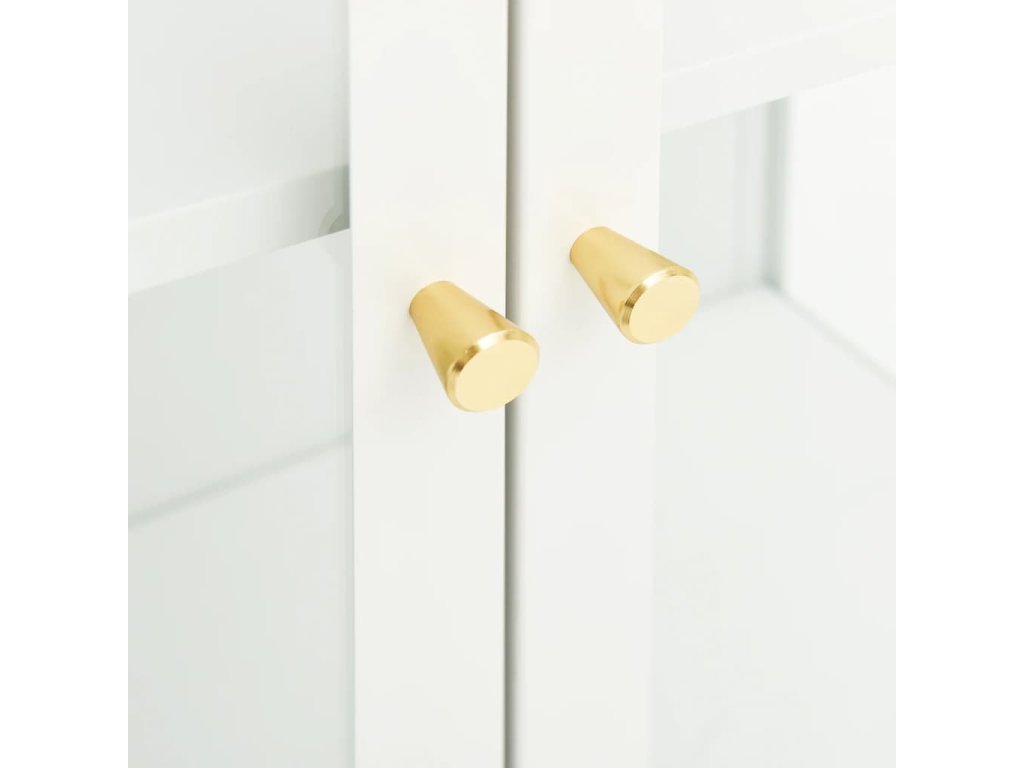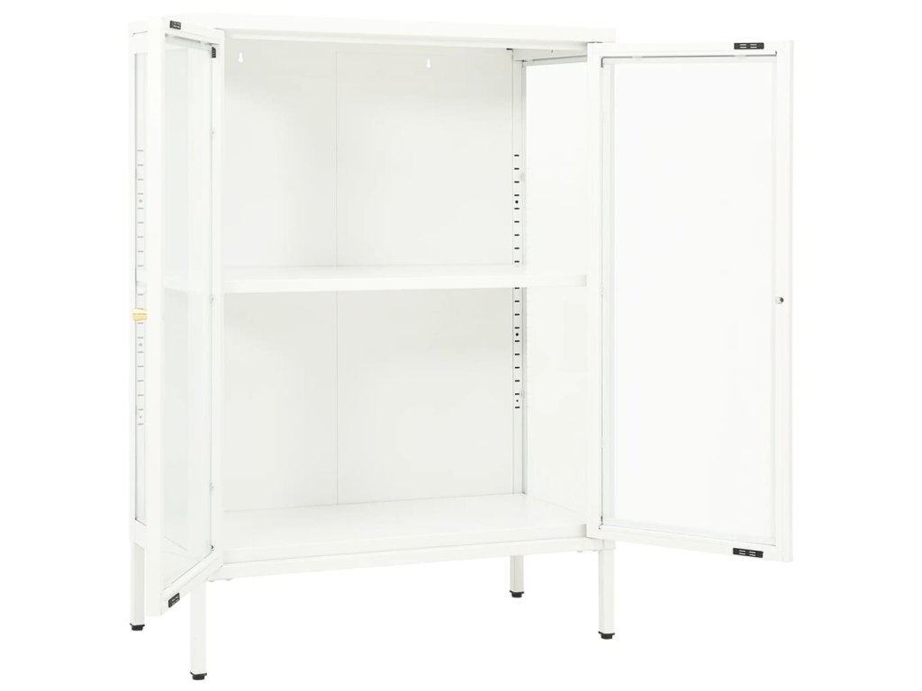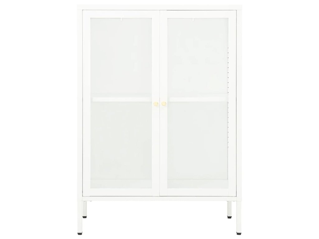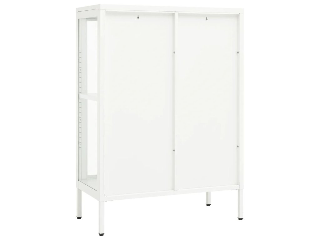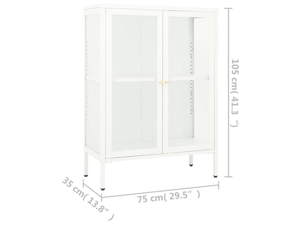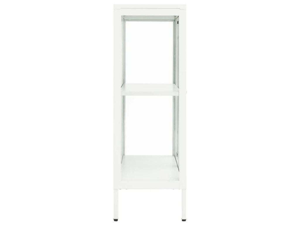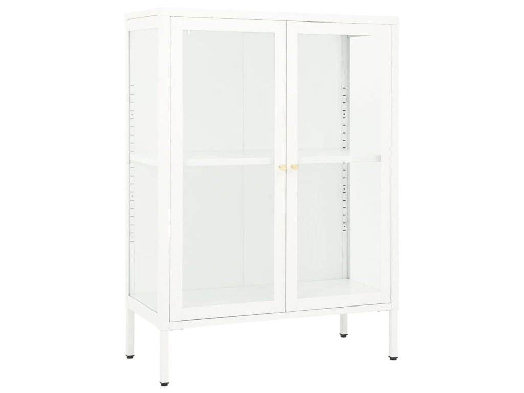 Konstrukce této úložné skříňky je z oceli, takže je pevná a odolná a zajišťuje roky používání. Za skleněnými dvířky najdete přihrádky, které nabízí dostatek úložného prostoru pro přehledné uložení a vystavení vašich knih, časopisů, DVD, váz a dalších dekorativních předmětů na dosah ruky. Police se dá nainstalovat v různých úrovních, máte tak tedy možnost měnit velikost úložného prostoru. Nohy dodávají skříňce mimořádnou stabilitu a lze je snadno nastavit na požadovanou výšku. Příborník se navíc snadno čistí vlhkým hadříkem.