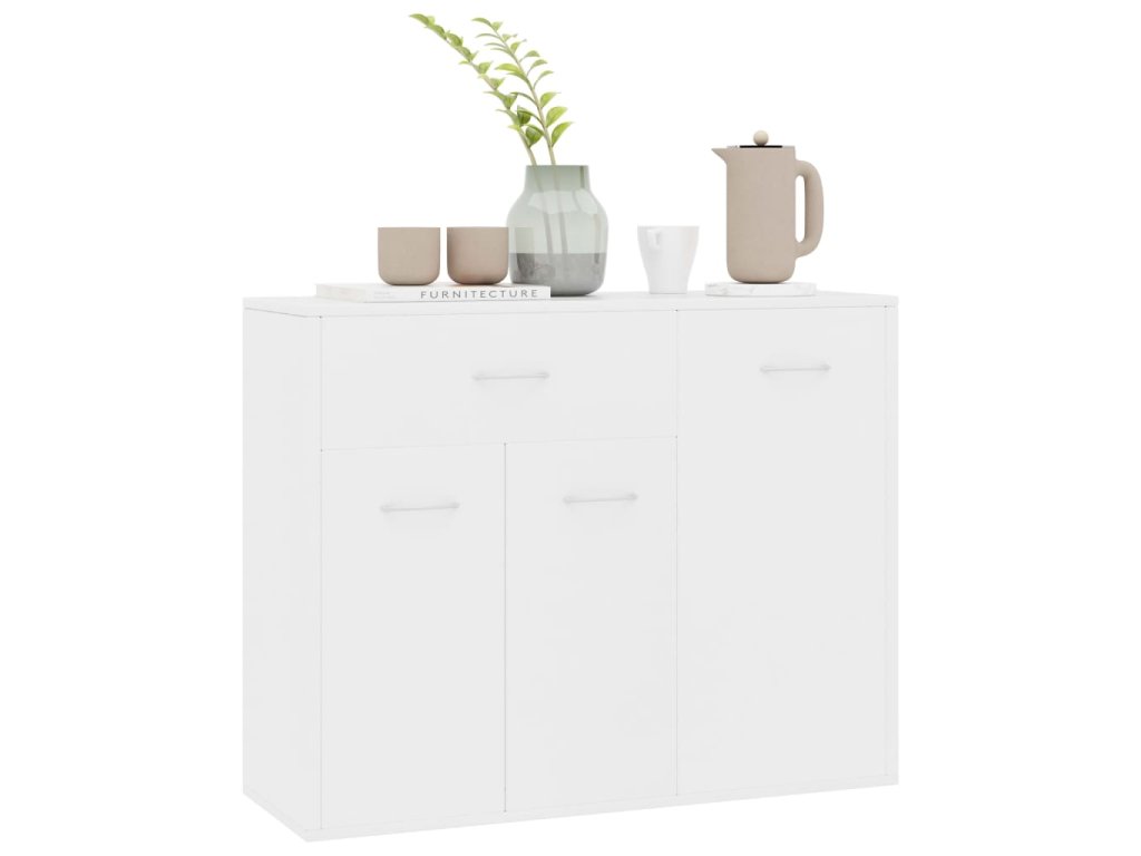 Příborník je vyroben z kvalitního kompozitního dřeva , a je tudíž mimořádně pevný a odolný. Najdete v něm 1 velkou zásuvku a 3 dvířka, které vám poskytnou spoustu místa na knihy, multimediální zařízení a jiné věci. Robustní horní deska je ideální pro vystavení dekorativních předmětů, zarámovaných fotografií nebo pokojových rostlin.