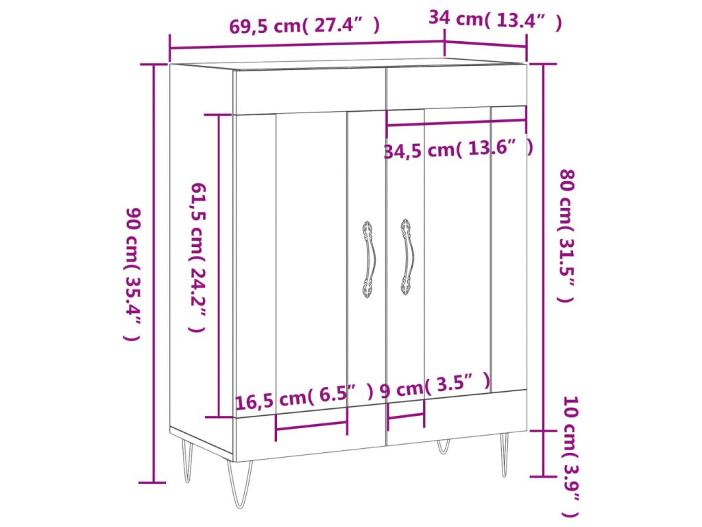 - Rozměry: 69,5 x 34 x 90 cm (Š x H x V)