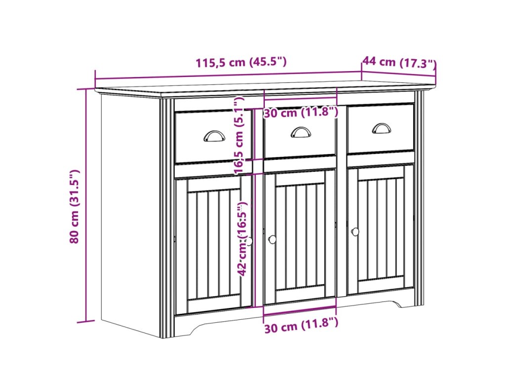 - Kovové úchytky: Kovové úchytky příborníku usnadňují otevírání a zavírání zásuvek a dvířek.Zároveň činí úložnou skříňku atraktivnější.