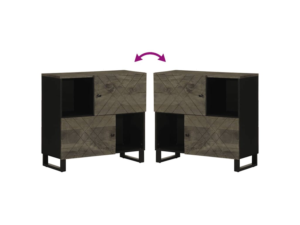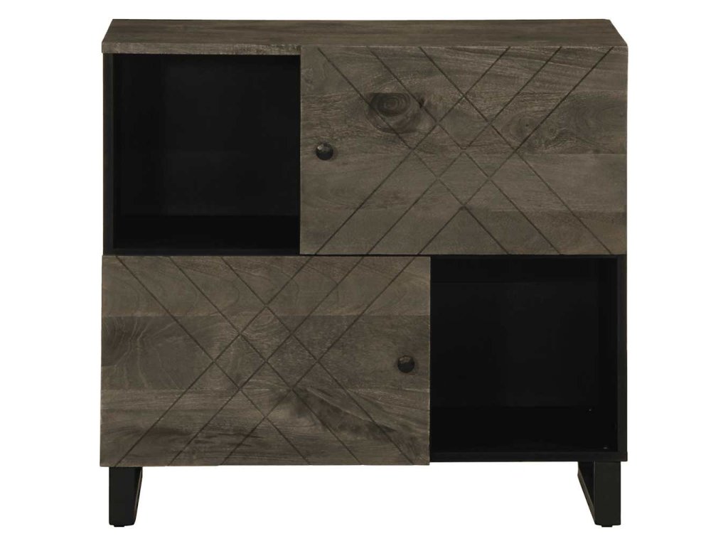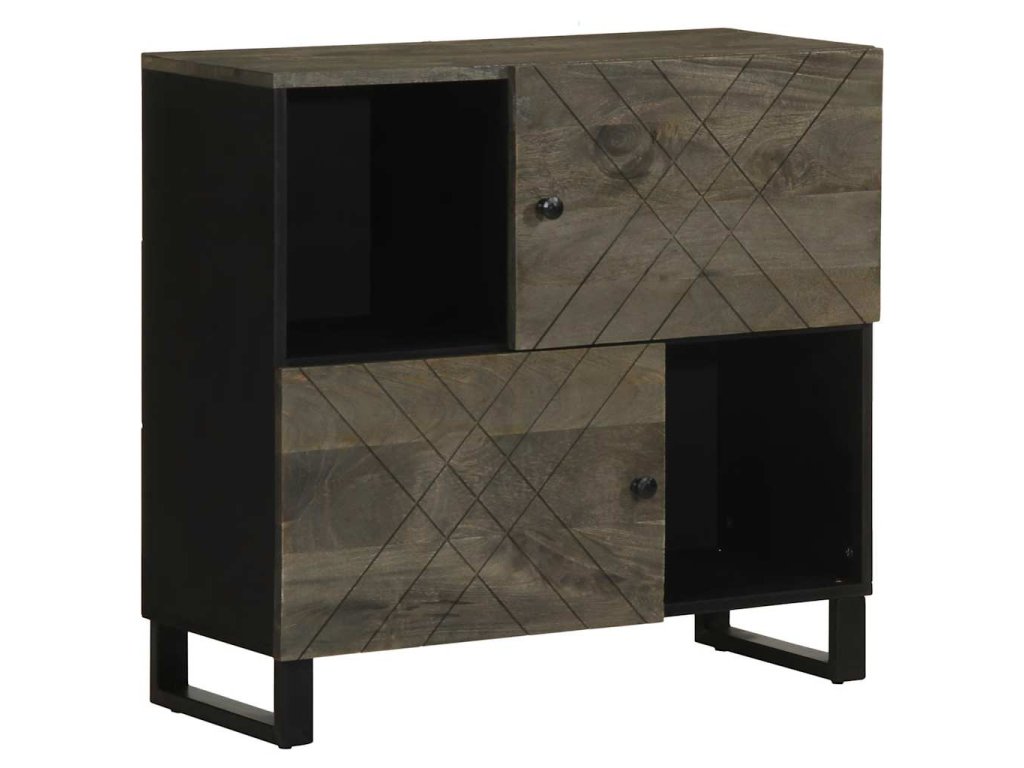 - Materiál: masivní mangové dřevo s šedou povrchovou úpravou pískováním, umělé dřevo, kov